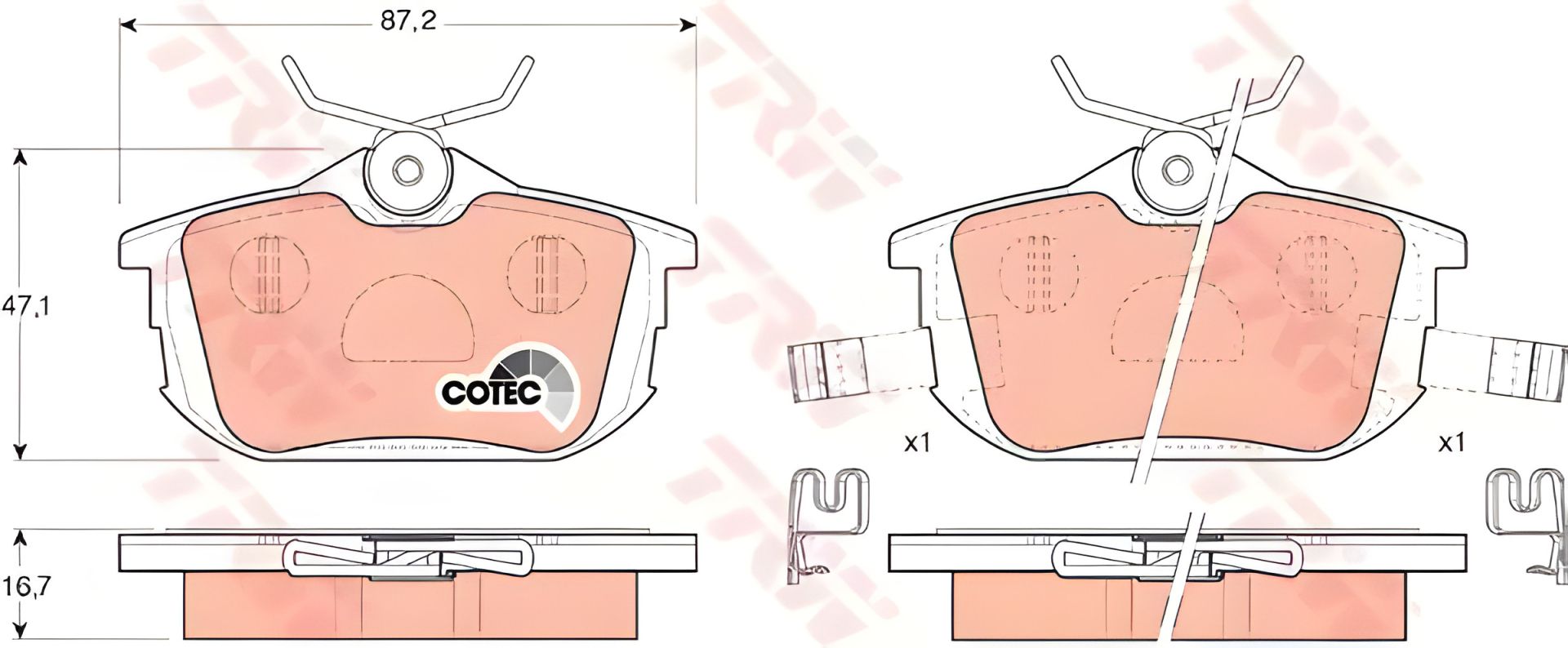 TRW (GDB1314) Комплект гальмівних колодок, дискове гальмо SMART FORFOUR, VOLVO V40