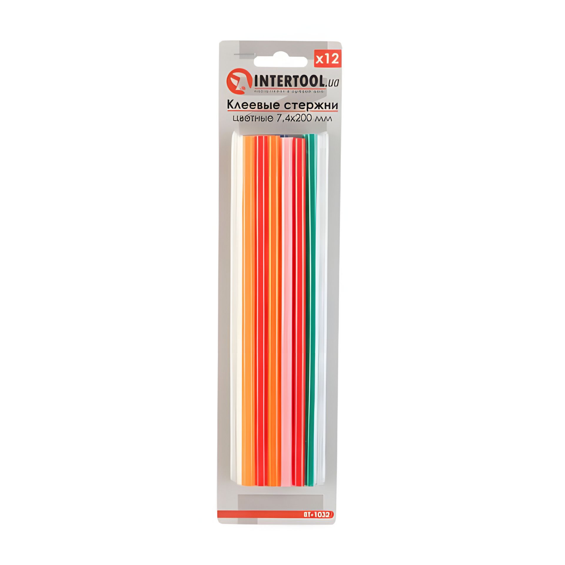 Комплект кольорових клейових стрижнів, 7,4×200 мм, 12 шт. INTERTOOL RT-1032