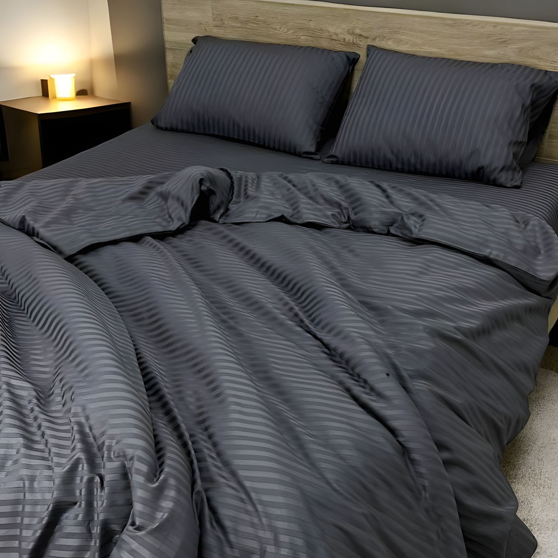 Комплект постільної білизни MakSon Elegant Graphite зі страйп-сатину – ідеальне поєднання розкоші та комфорту. Завдяки жакардовому плетінню, тканина має ніжний блиск і переливи, які додають елегантності вашій спальні. Страйп-сатин – це високоякісний сатин, відомий своєю міцністю, м'якістю та витривалістю. Він дарує незабутній комфорт та естетичне задоволення кожному.