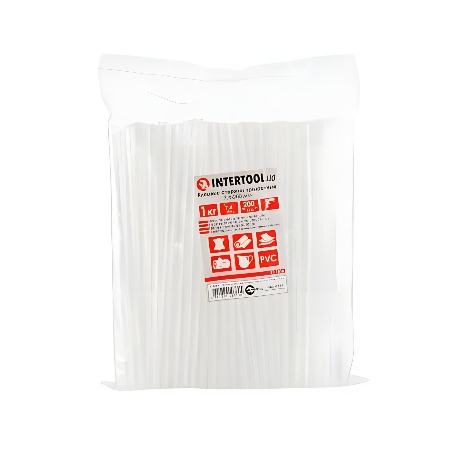 Комплект клейових стрижнів прозорих, 7,4×200 мм, уп. 1 кг від INTERTOOL RT-1036