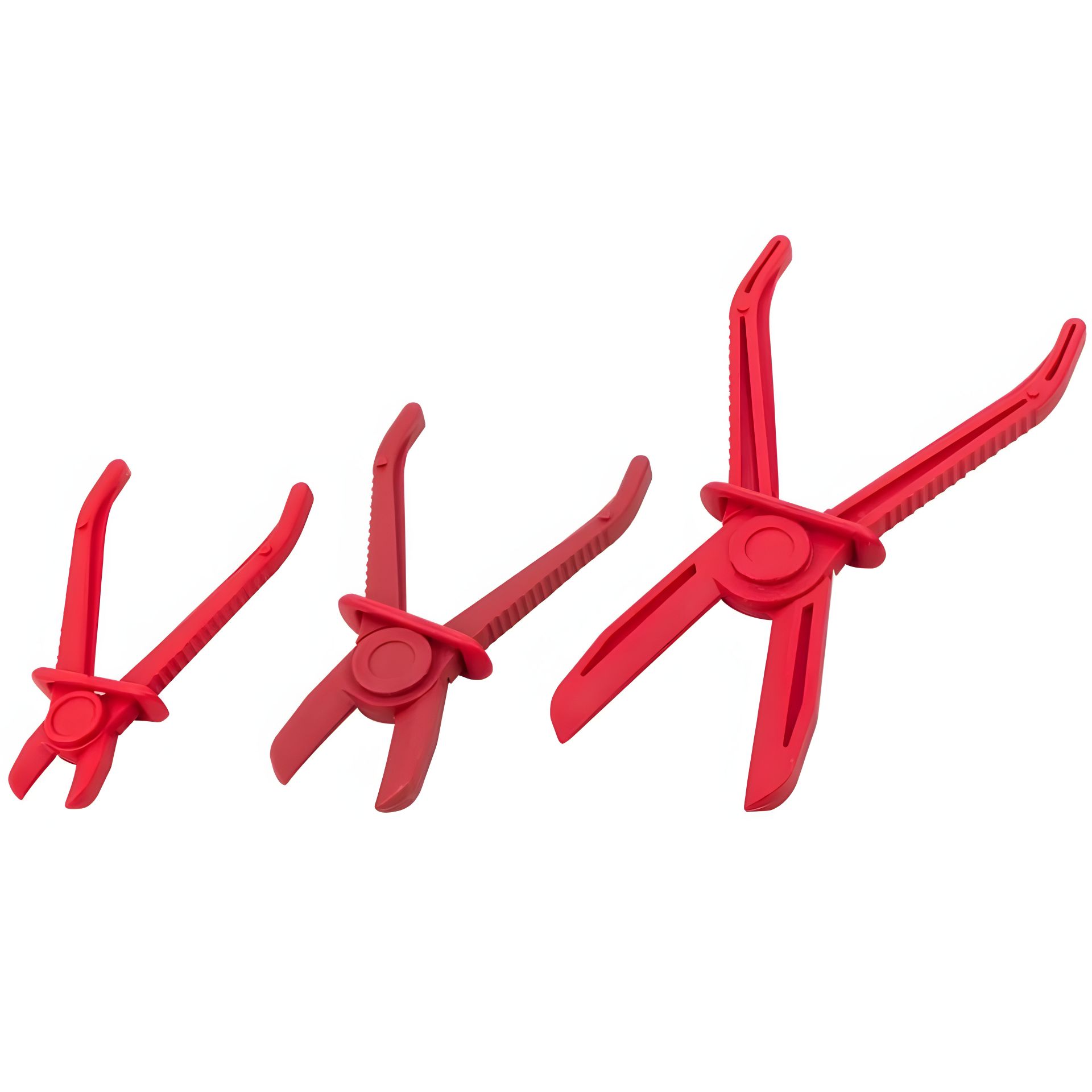 - Три розміри в комплекті: Набір включає три щипці розмірами 155 мм, 185 мм та 255 мм, що дозволяє працювати зі шлангами різного діаметру.
