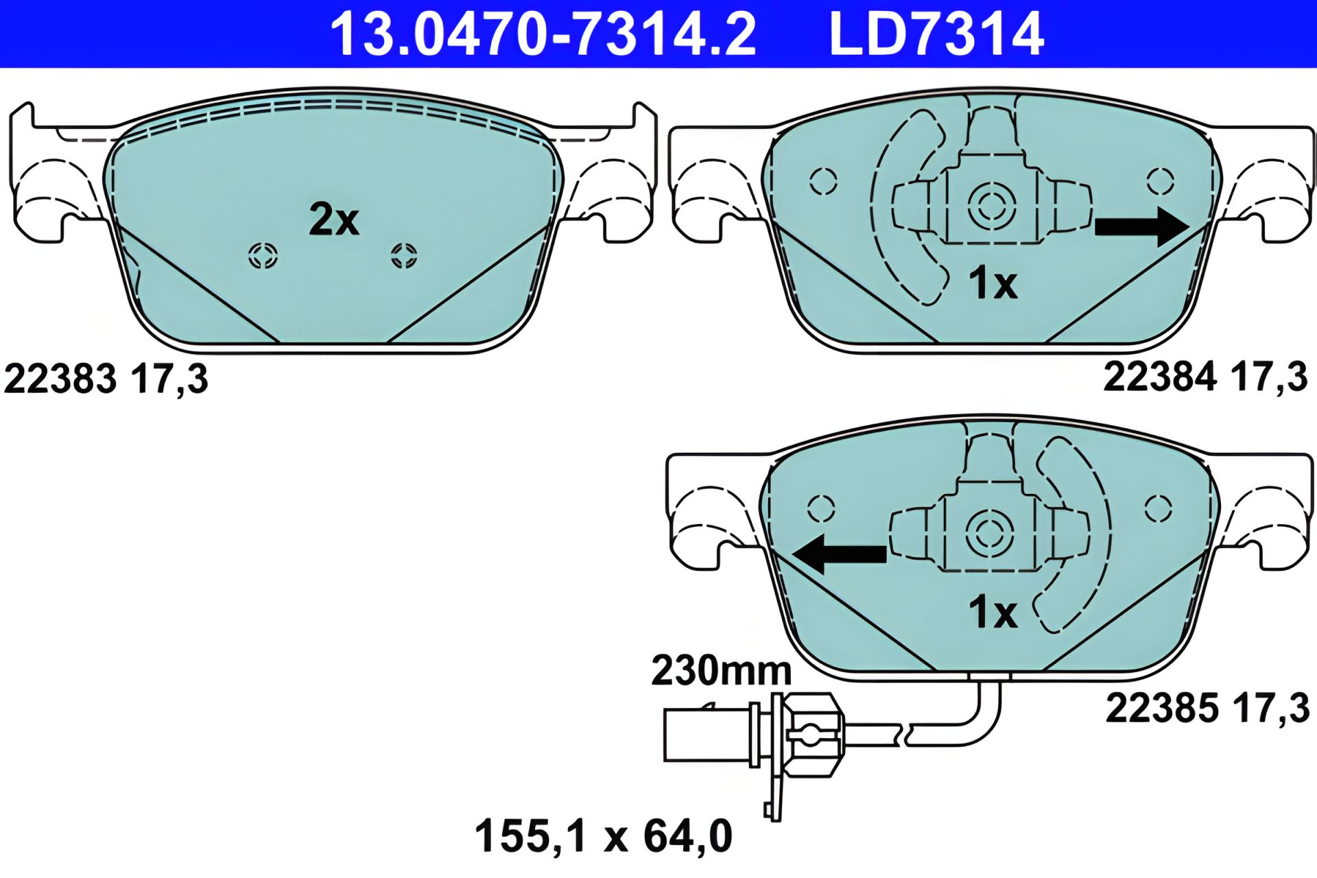 Колодок комплект гальмівних AUDI A4, AUDI A5, ATE (13047073142)