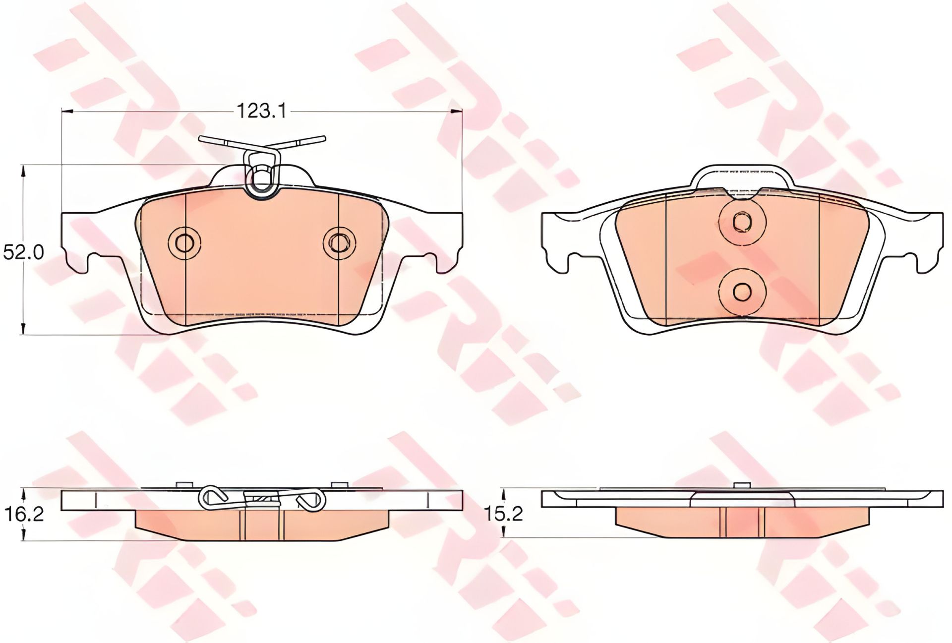 Комплект гальмівних колодок для FORD GRAND, FORD C-MAX, FORD FOCUS, TRW (GDB2033)