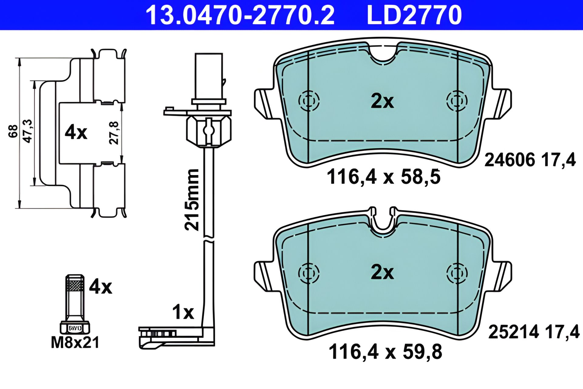 Гальмівні колодки комплект для PORSCHE MACAN, AUDI A7, AUDI A6, ATE (13047027702)