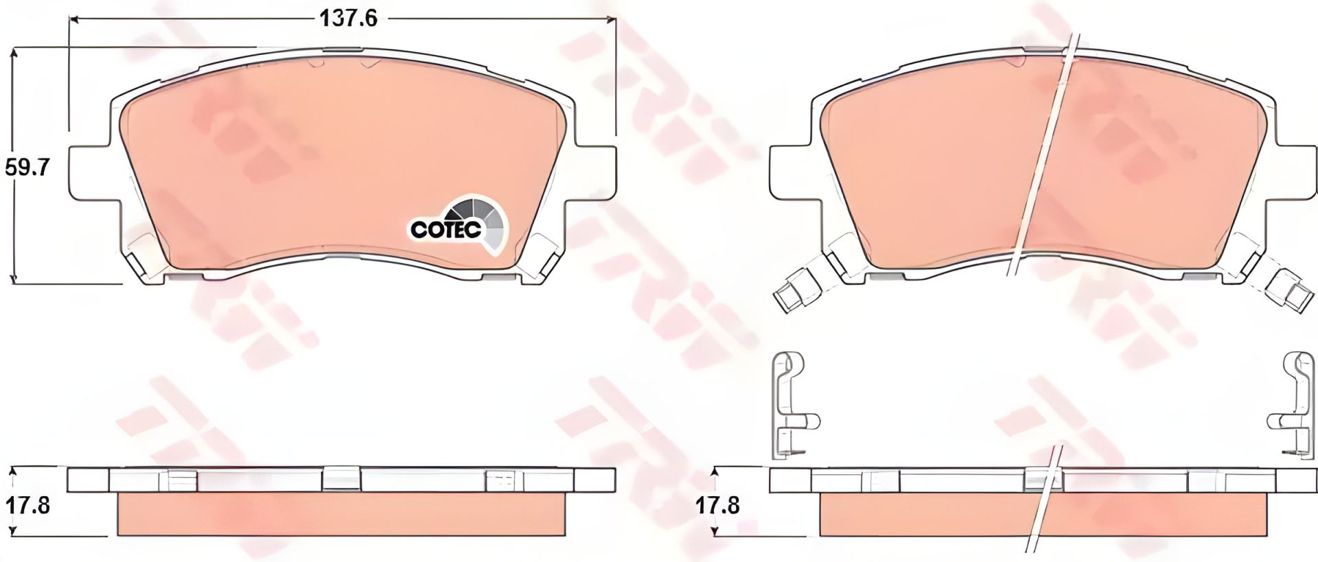 Комплект гальмівних колодок для SUBARU LEGACY, OUTBACK, IMPREZA, TRW (GDB3217)