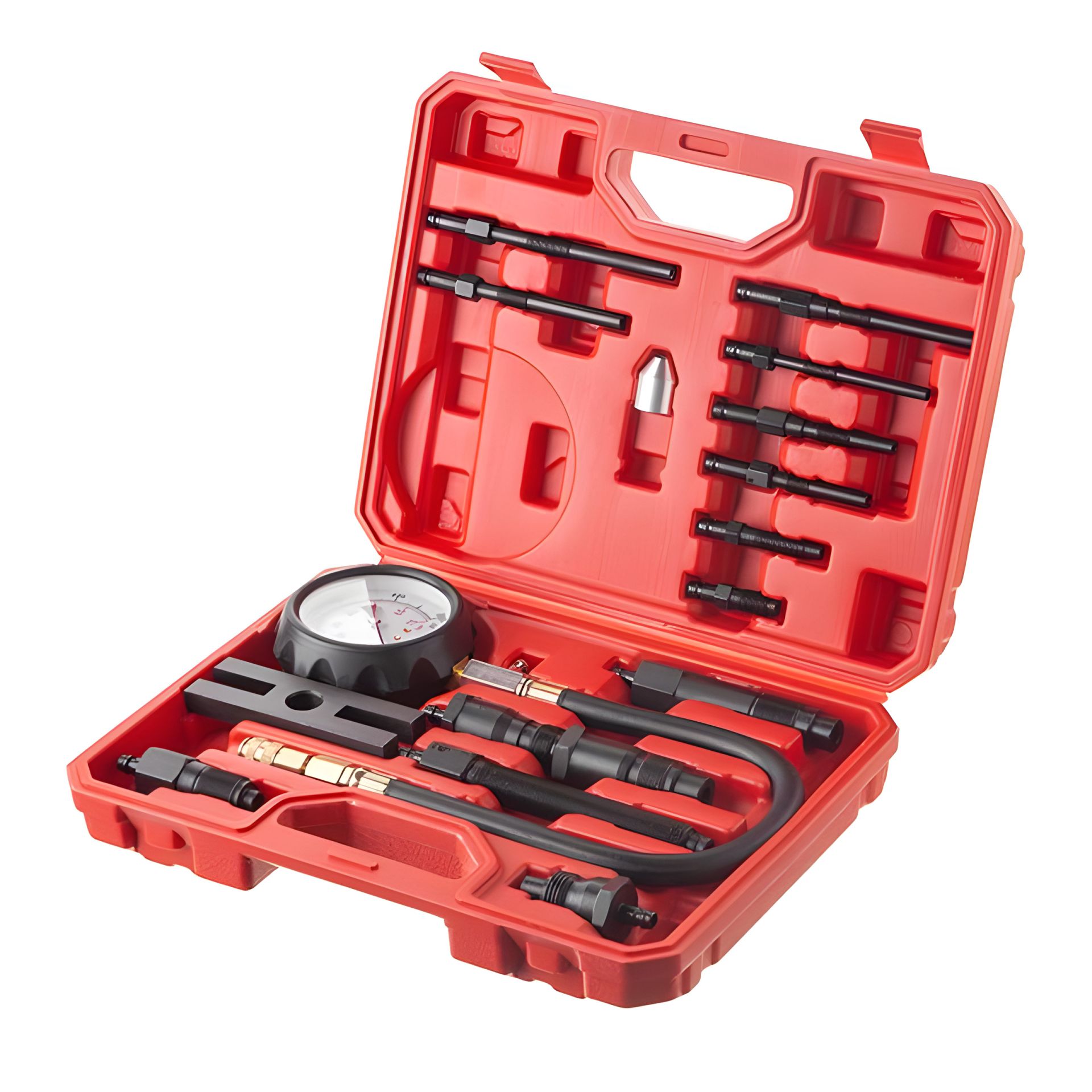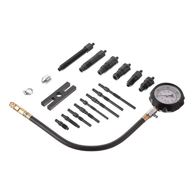 - Дев'ять насадок для вимірювання компресії через свічкові канали (М10х1 довжиною 91 мм; М10х1 довжиною 119 мм; М10х1,25 довжиною 135 мм; М22х1,25 довжиною 118 мм; М10х1 довжиною 113 мм; М10х1 довжиною; М10х1 довжиною; М10х1,25 завдовжки 64 мм);