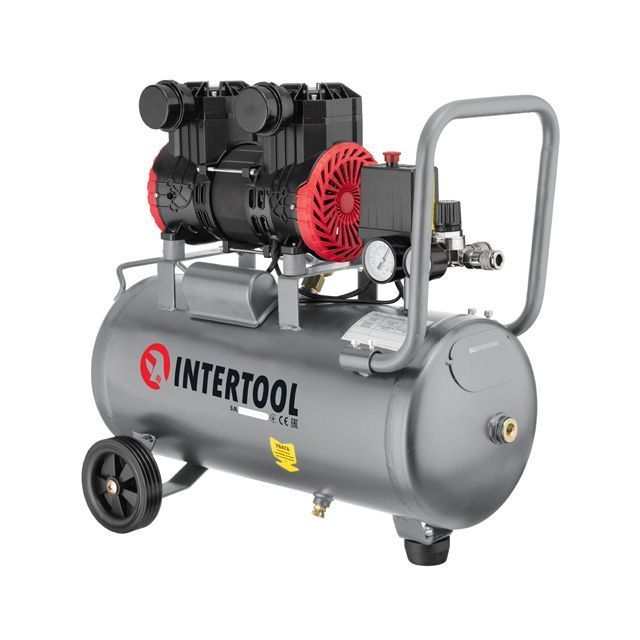 Компресор, 24 л, 1,1 кВт, 220 В, 8 атм, 200 л/хв, 2800 об/хв, безмасляний, 2 циліндри INTERTOOL PT-0029