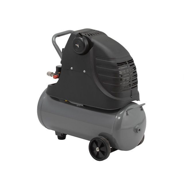 Зручне транспортування компресора по робочому майданчику здійснюється двома колесами та за допомогою ручки. Опорні ніжки компресора виготовлені з гуми, вона згладжує вібрацію та виступає в ролі амортизаційного елемента. Для того, щоб можна було контролювати тиск у ресивері й тиск на виході, компресор оснащений двома манометрами з регулятором вихідного тиску. Регулятор тиску з манометром дозволяє регулювати та постійно підтримувати вихідний тиск, необхідний вашому інструменту або обладнанню.