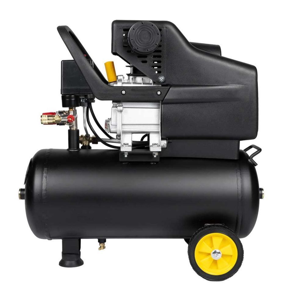 Двигун компресора закритий спеціальним кожухом, який запобігає його пошкодженню та забрудненням. Опорна ніжка забезпечує стійке положення на поверхні, а гумова подушечка знижує рівень вібрації.