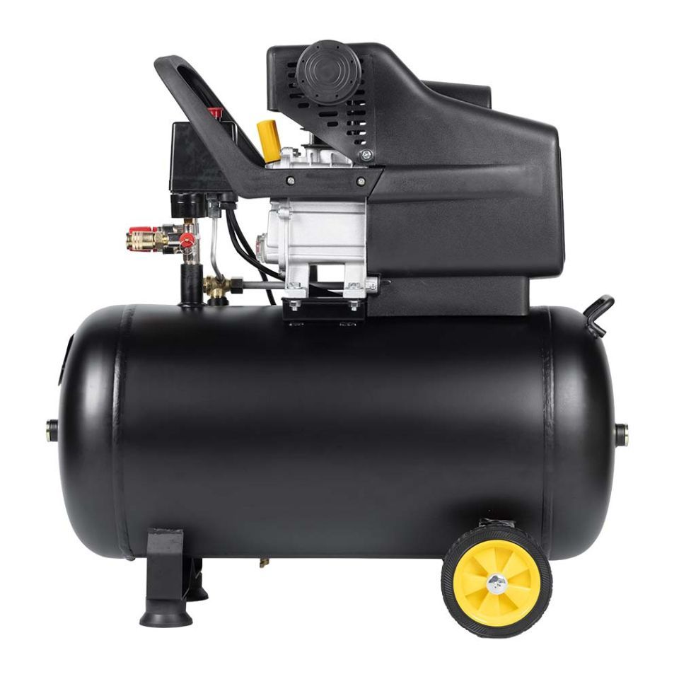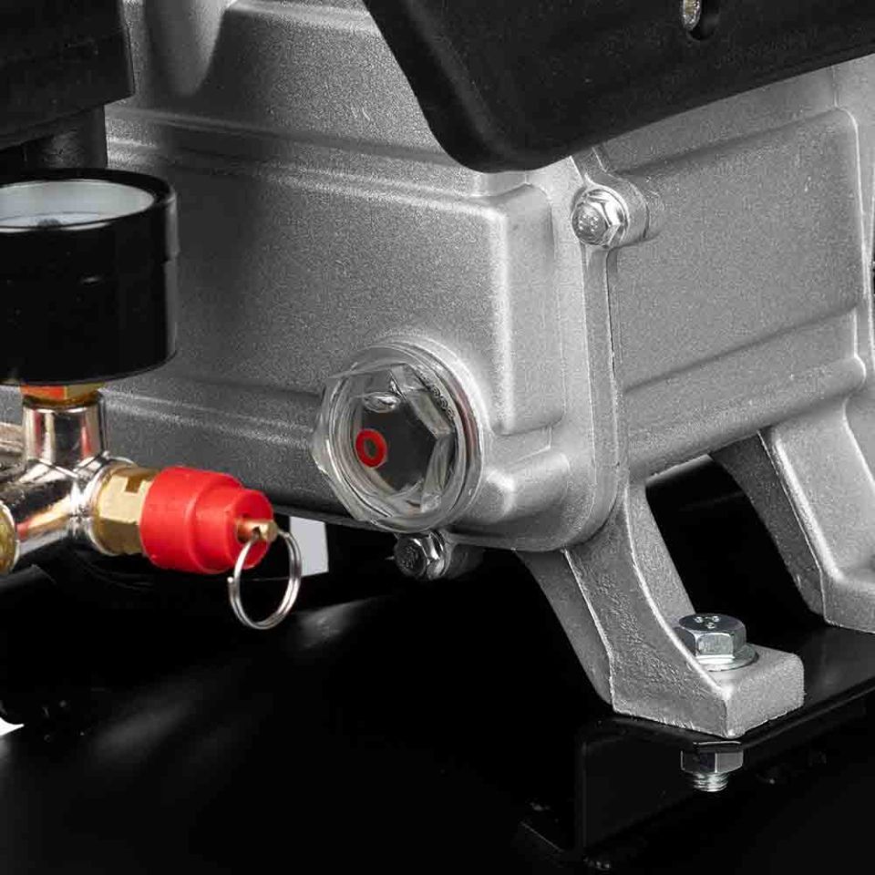 Двигун компресора закритий спеціальним кожухом, який запобігає його пошкодженню та забрудненням. Опорна ніжка забезпечує стійке положення на поверхні, а гумова подушечка знижує рівень вібрації.