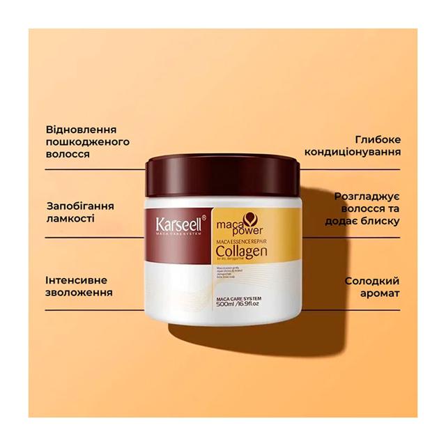 Кондиціонуюча маска Karseell Collagen Hair Mask з аргановим маслом для сухого волосся, 500 мл (заводська упаковка)