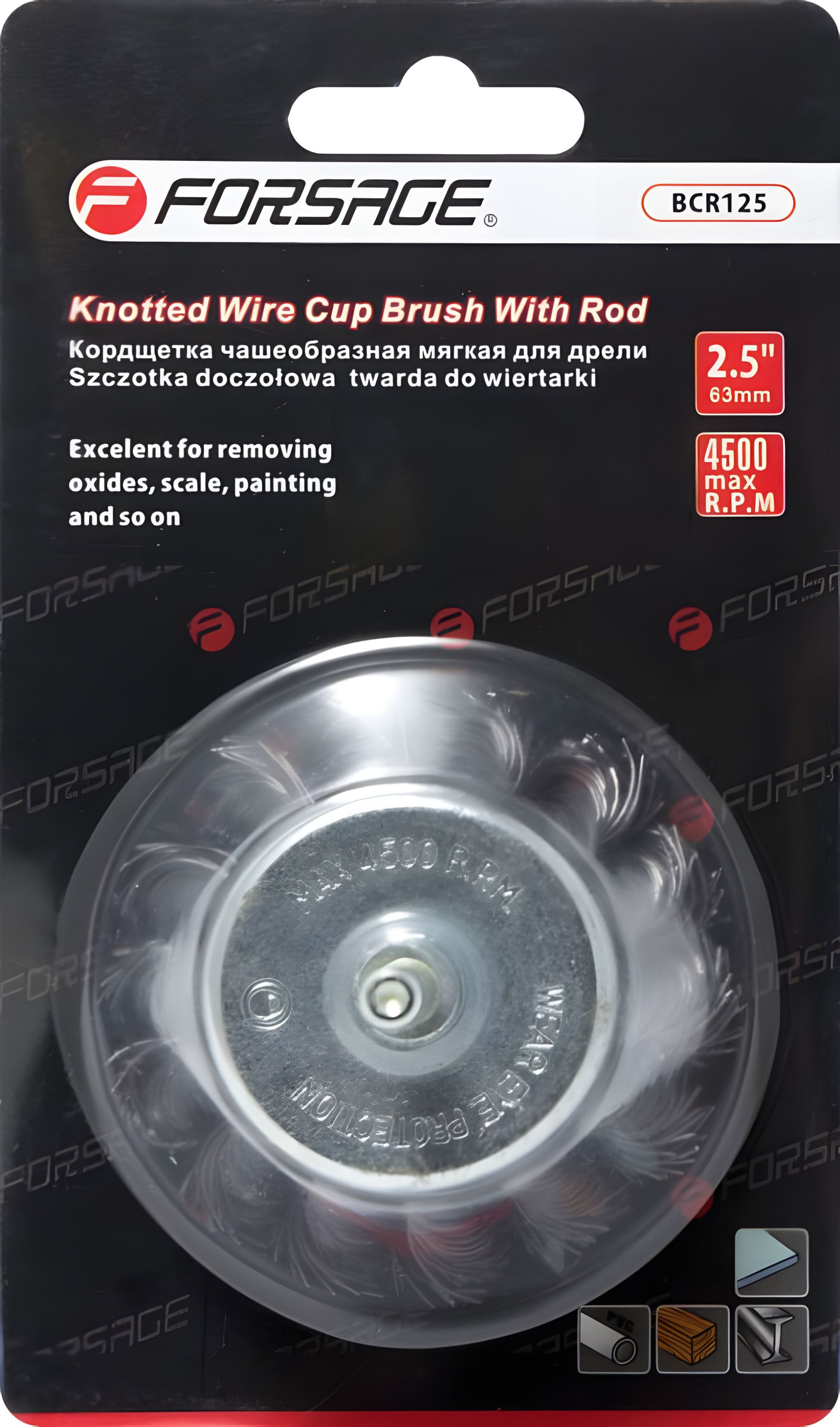 Кордщетка чашеподібна сталева кручена для дриля 65мм, в блістері FORSAGE F-BCR125