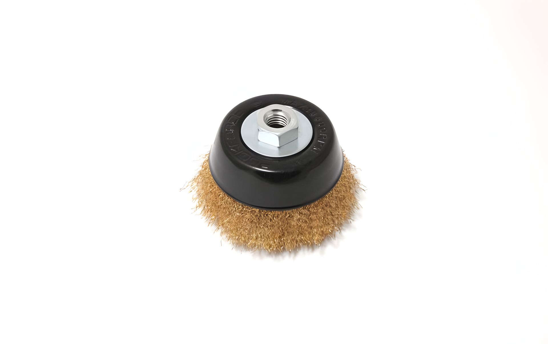 Щітка «чашка» RockForce RF-BWC025 діаметром 60 мм, із щетиною з латунованого крученого дроту , встановлюється на вал УШМ за допомогою гайки М14. Призначена для зняття тонкого шару фарби або лаку, видалення іржі та забруднень. При рекомендованій швидкості обертання 12500 об/хв щіткою можна швидко обробляти ділянки великої площі.