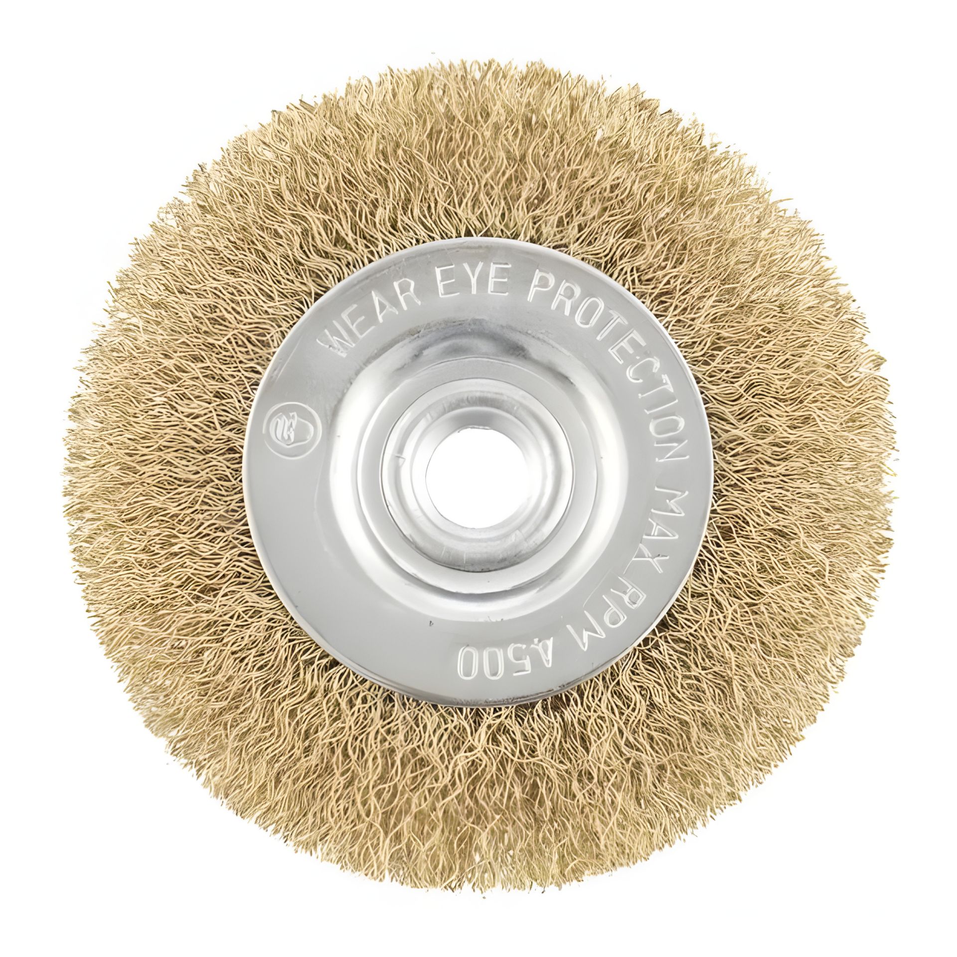Плоска щітка Forsage F-BWF006 діаметром 150 мм , із щетиною з латунованого крученого дроту, кріпиться до валу УШМ за допомогою гайки М14. Використовується для щадної обробки поверхонь, зняття тонкого шару іржі, лакофарбових покриттів, видалення забруднень, що в'їлися. Плоскою щіткою зручно працювати у важкодоступних місцях: кутах та згинах. При експлуатації на рекомендованій швидкості 4500 об/хв оснастка прослужить довго.