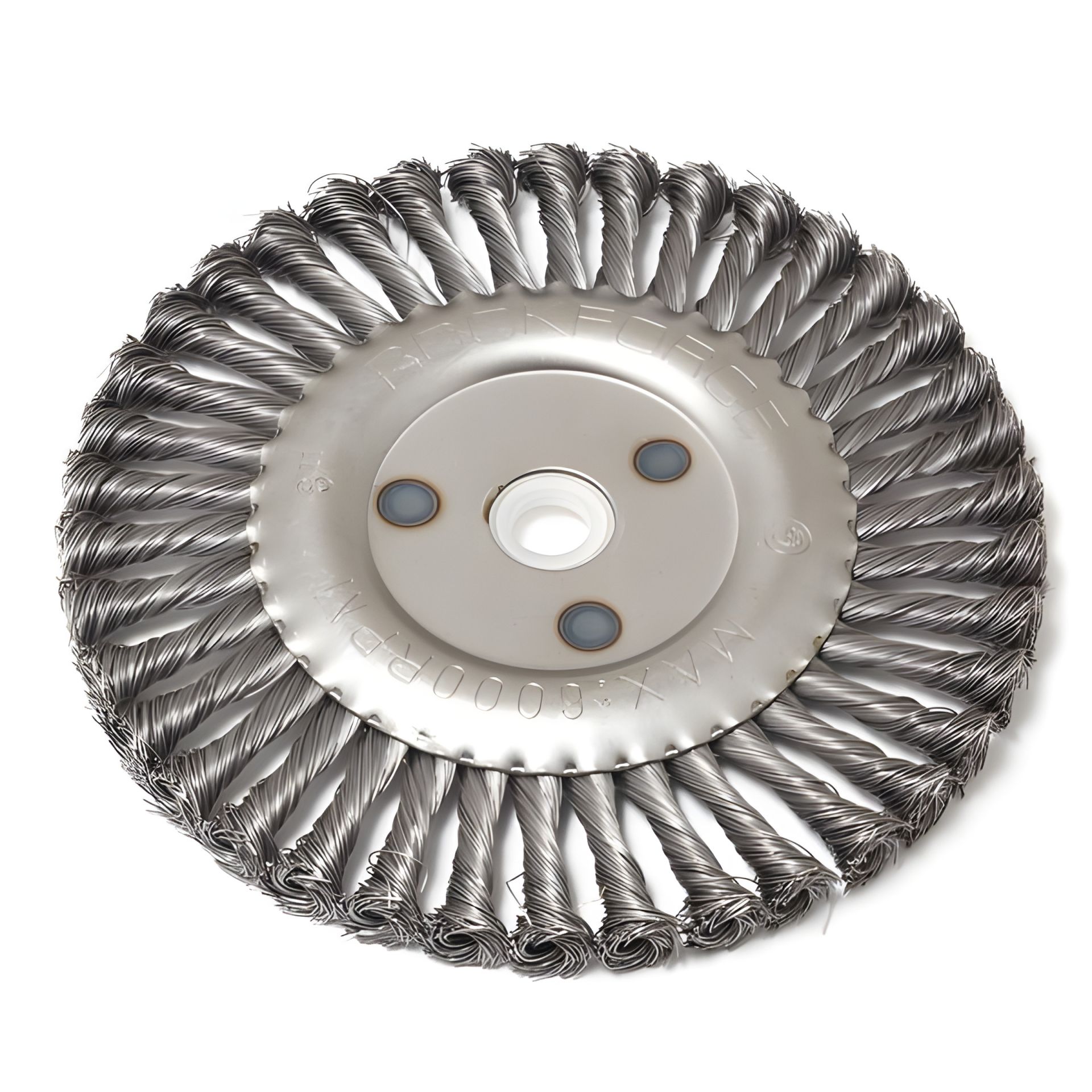 Плоска щітка для УШМ RockForce RF-BWF108 діаметром 200 мм, з посадкою 22,2 мм, із щетиною із крученого нержавіючого дроту 0,5 мм, призначена для зняття товстого верхнього шару з металевих, дерев'яних, бетонних поверхонь. Видаляє забруднення, іржу, старі лакофарбові покриття, задирки, окалину з рівних поверхонь та у важкодоступних місцях. Оптимальна для обробки виробів із нержавіючої сталі, а також зачищення зварних швів. Щітку встановлюють на фланець кутошліфувальної машини, що зручно для виконання великого обсягу робіт, що не потребують частої зміни насадок. Максимальна швидкість обертання 6000 об/хв. Під час роботи обов'язкове використання засобів індивідуального захисту. Щітка буде корисна на будівельному майданчику, виробничому підприємстві, а також знадобиться у побуті.