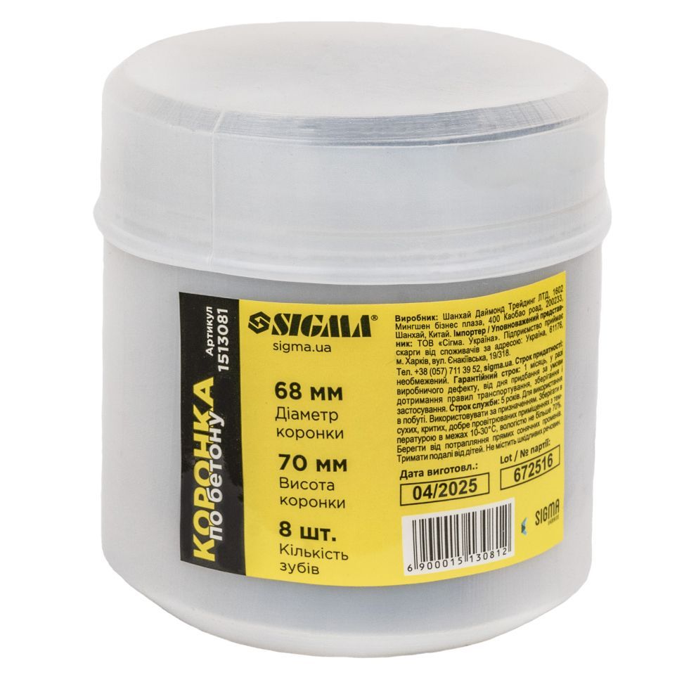 Коронка по бетону Ø68×70мм 8 зубців (тубус) SIGMA 1513081