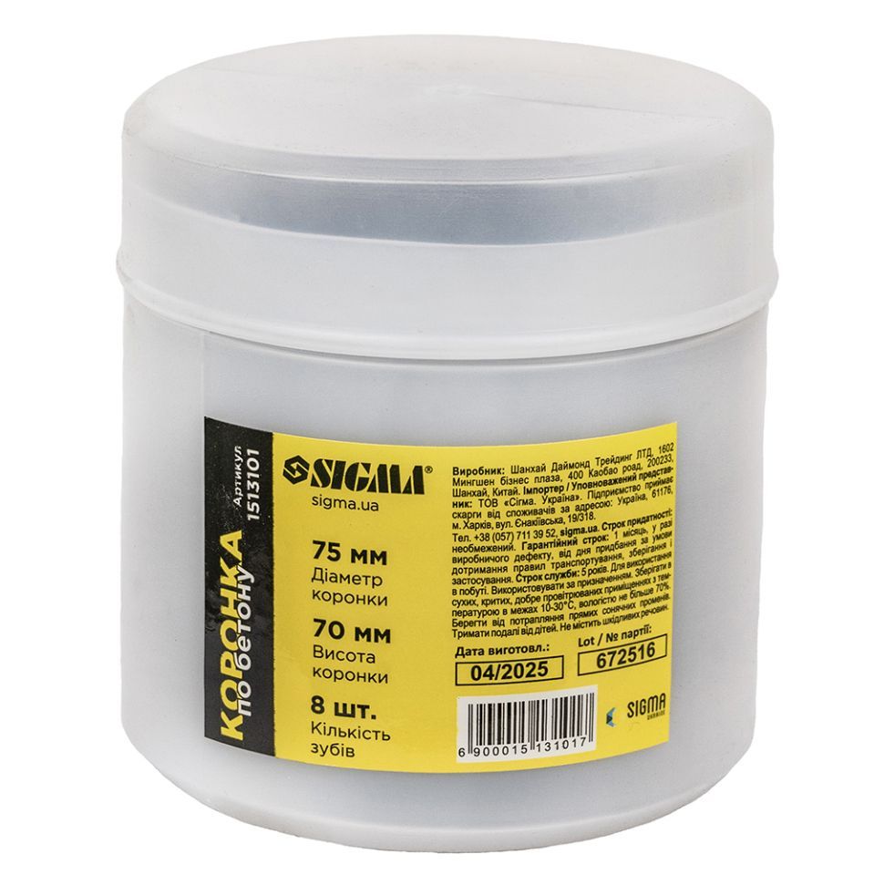 Коронка по бетону Ø75×70мм 8 зубців (тубус) SIGMA 1513101