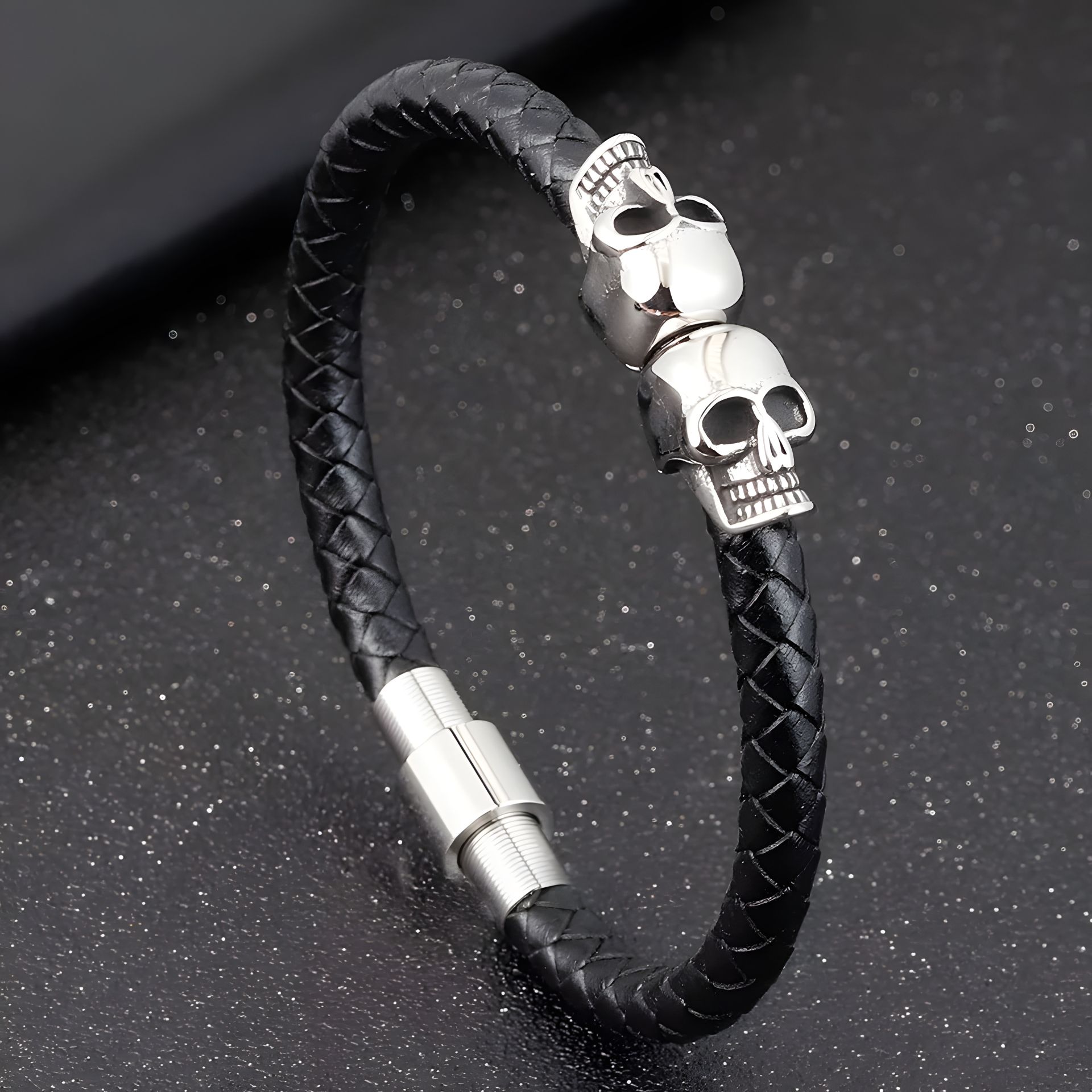 Шкіряний браслет на магніті ЧЕРЕП жіночий чоловічий меломану гітариста рокера