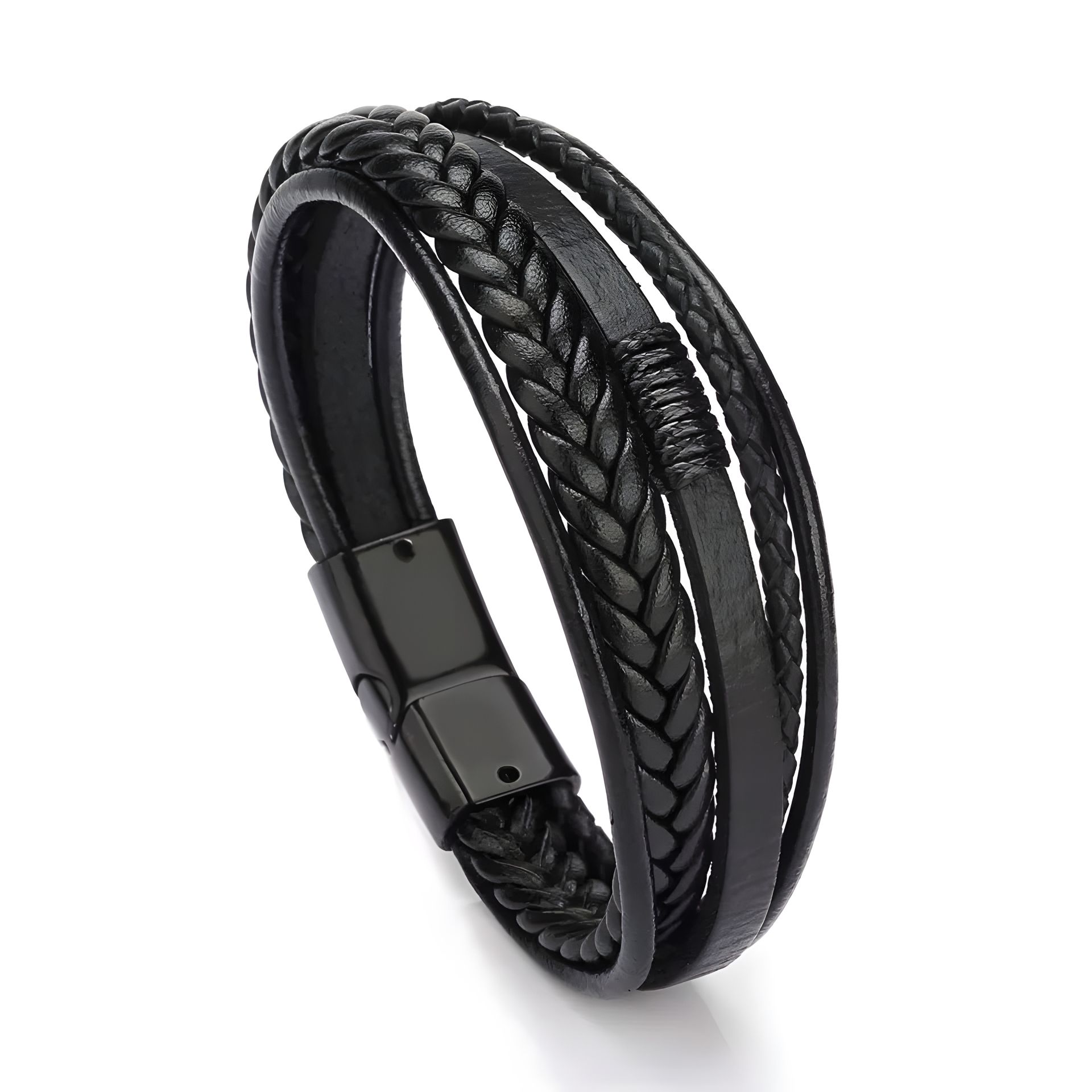 Шкіряний браслет, чоловічий, на застібці, плетіння, чорний замок