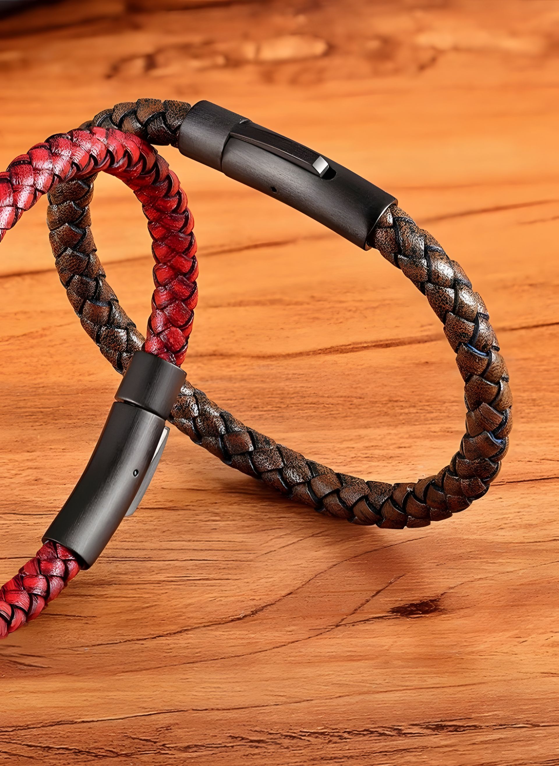 Шкіряний браслет на застібці чоловічий жіночий плетіння.