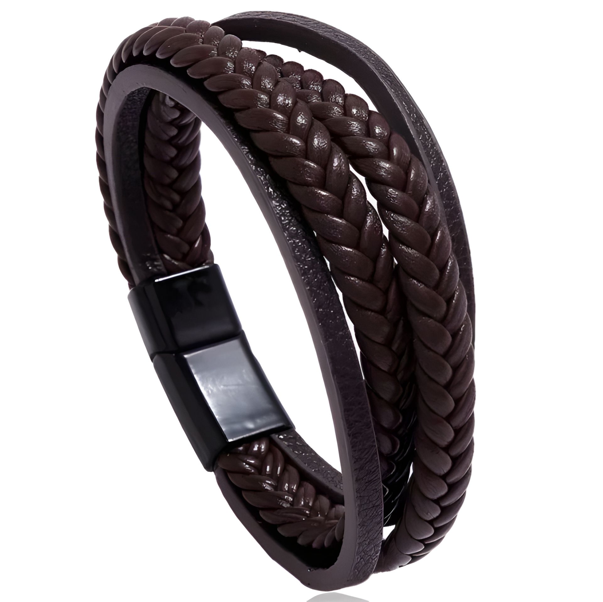 Браслет плетений зі шкіри на застібці, унісекс, коричнево-чорний