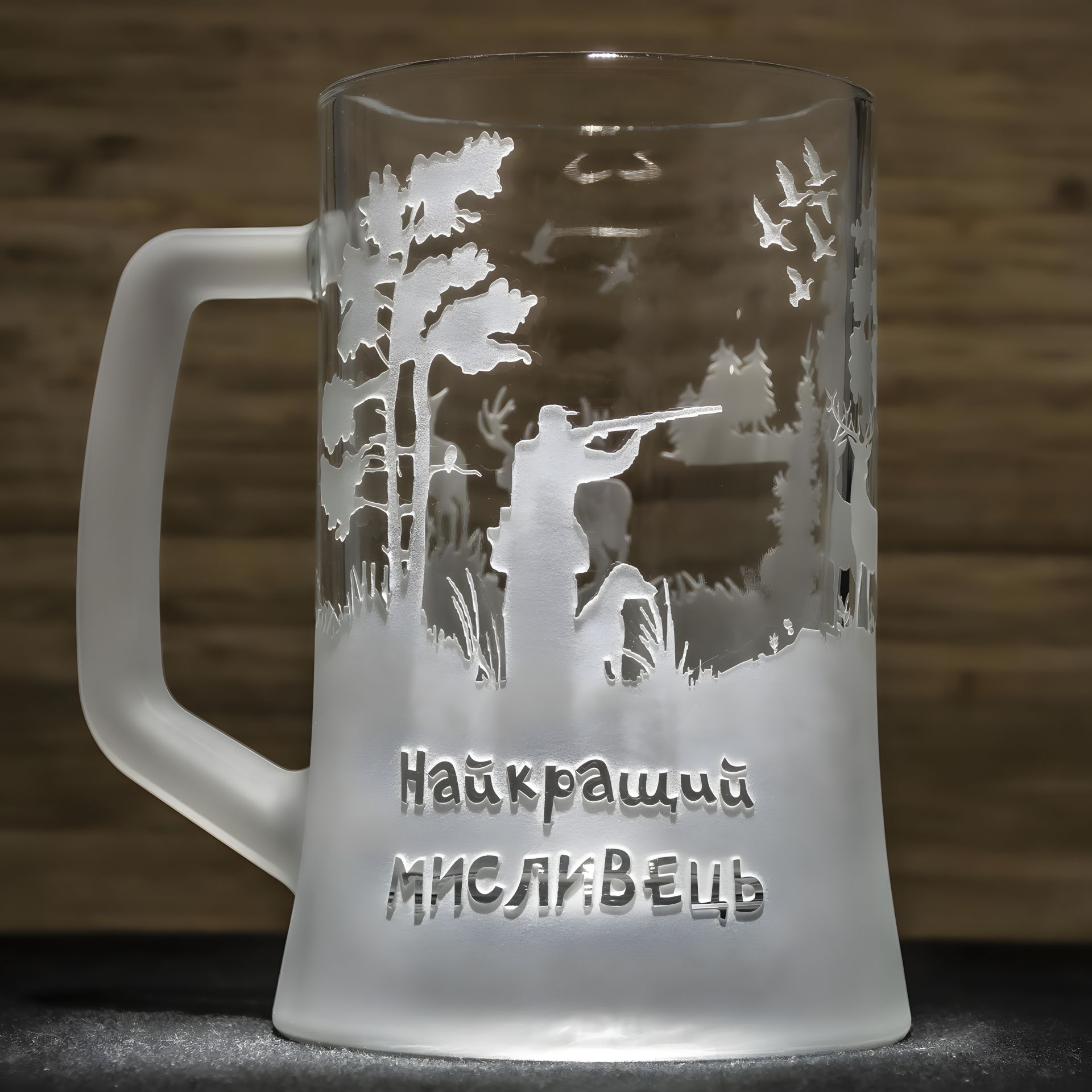 Пивний келих із гравіюванням з матовою ручкою Найкращий мисливець - подарунок для мисливця