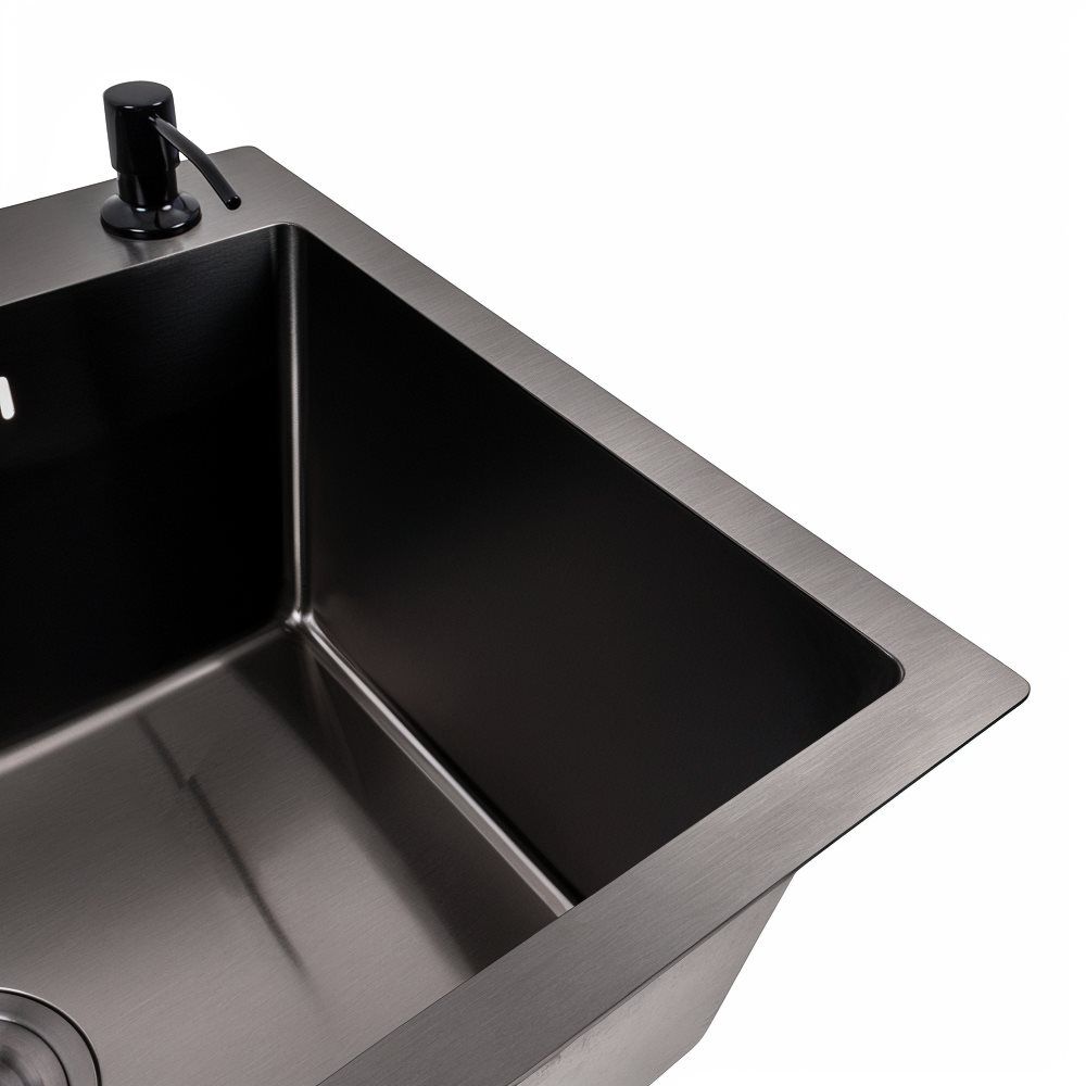 Кухонна мийка VALESO Handmade PVD 600х450х220 чорна (дозатор в комплекті)
