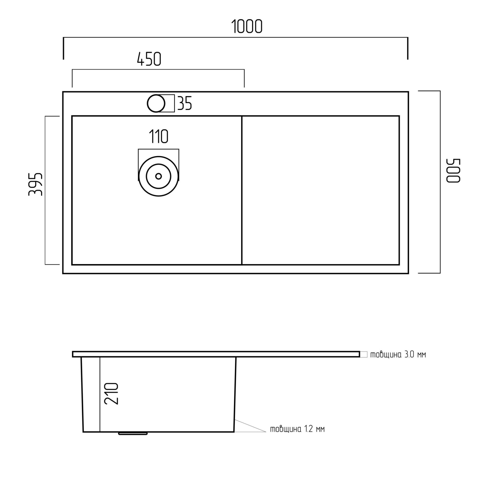 Кухонна мийка Platinum Handmade 1000х500 L (з кріпленням + повна комплектація)