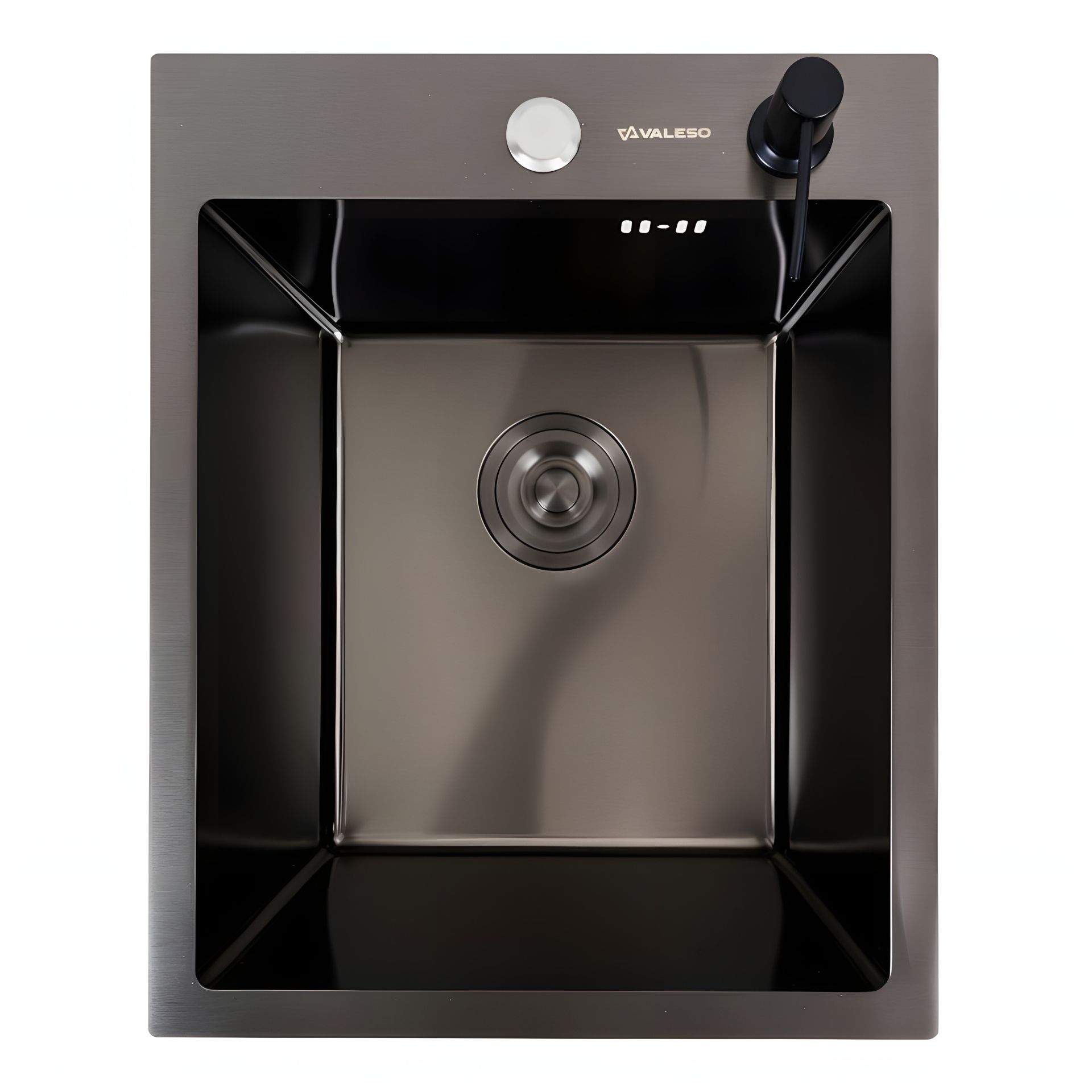 Кухонна мийка VALESO Handmade PVD 600х450х220 чорна (дозатор в комплекті)