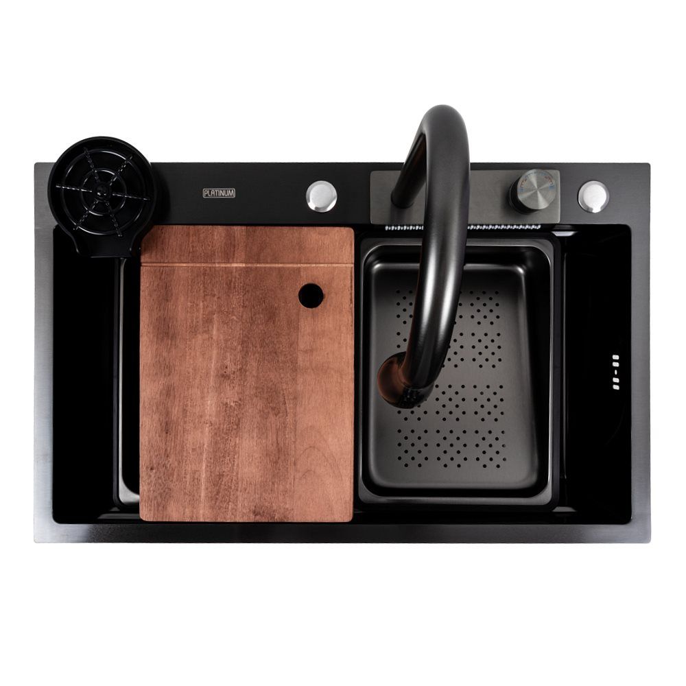 Кухонна мийка CM 75*46C PVD чорна, Platinum Handmade "ВОДОСПАД" (Декор)