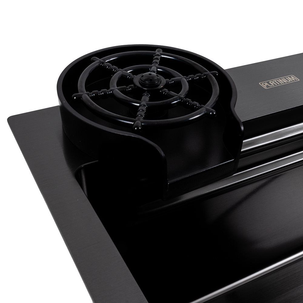 Чорна кухонна мийка Platinum Handmade PVD 650х430х220 (товщина 3,0/1,5 + дозатор)