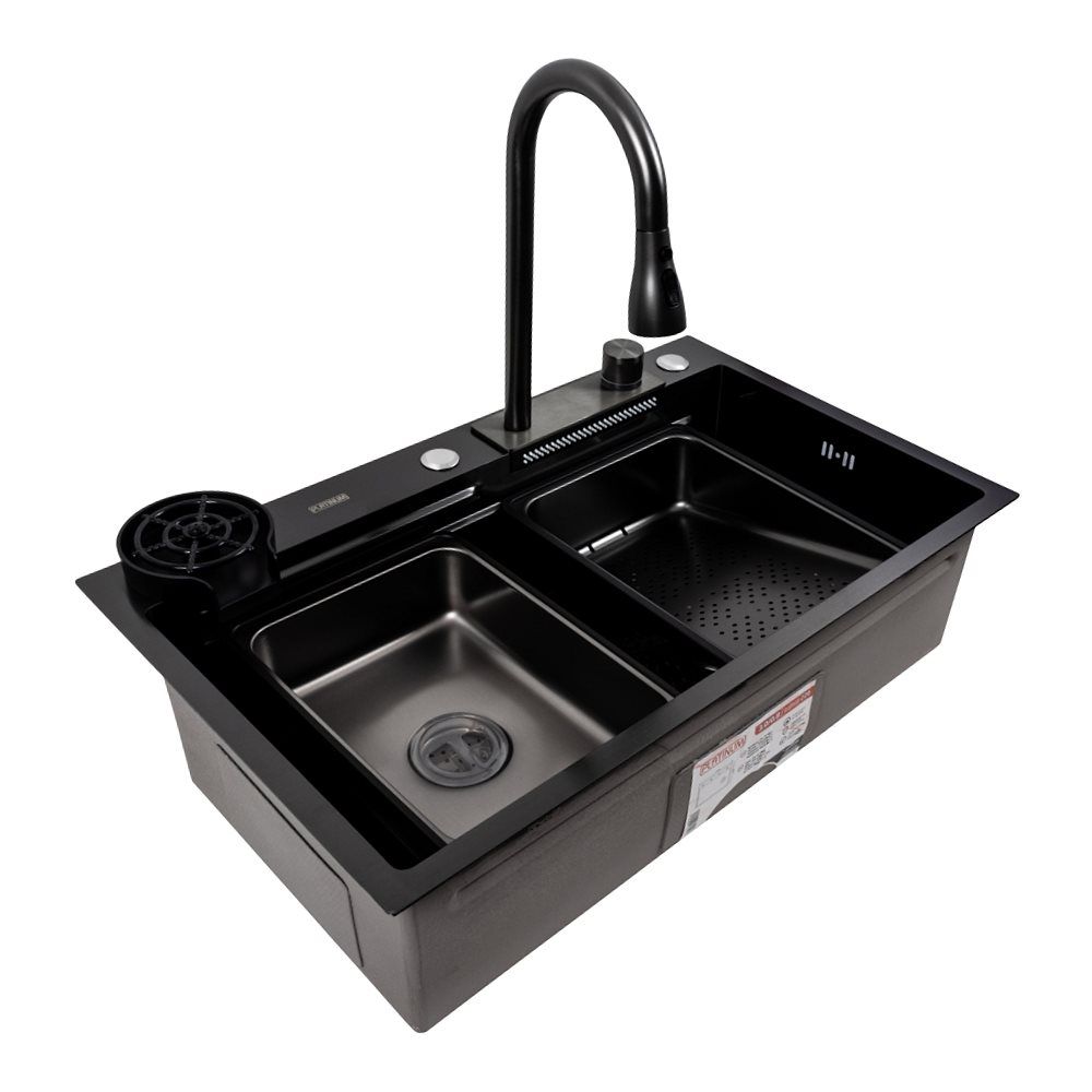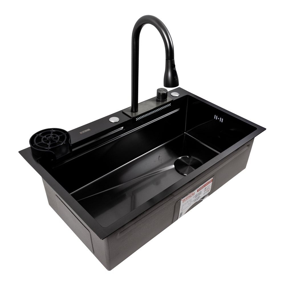 Чорна кухонна мийка PVD CM 75*46A, Platinum Handmade "Водоспад"