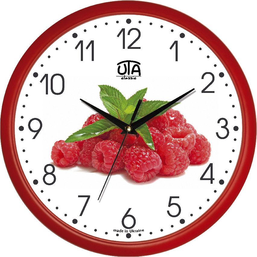 Настінний годинник на кухні штату Юта "класично" (30 см) 01 R 65 "Raspberry" характеризується круглою формою, діаметром 30 см, товщиною 4,5 см, вага 0,35 кг. Розроблений для позначення поточного часу за години та хвилини.