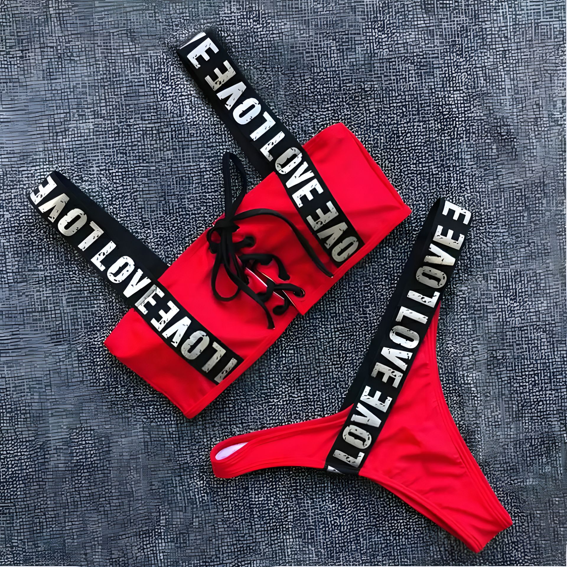 Червоний сексуальний купальник із гумкою LOVE, комплект білизни для купання (літній)