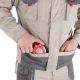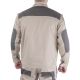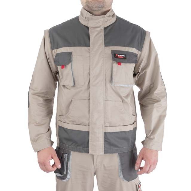 Куртка бежевого кольору виготовляється зі 100% натуральної бавовни з високим рівнем гігієнічності і міцності (щільність 180 г/м²). Виріб відмінно пропускає повітря і не створює дискомфорту під час інтенсивної роботи, при цьому захищає від всіляких механічних впливів зовнішнього середовища. За необхідності, у спекотному середовищі може трансформуватися в робочий жилет, рукави від'єднуються.
