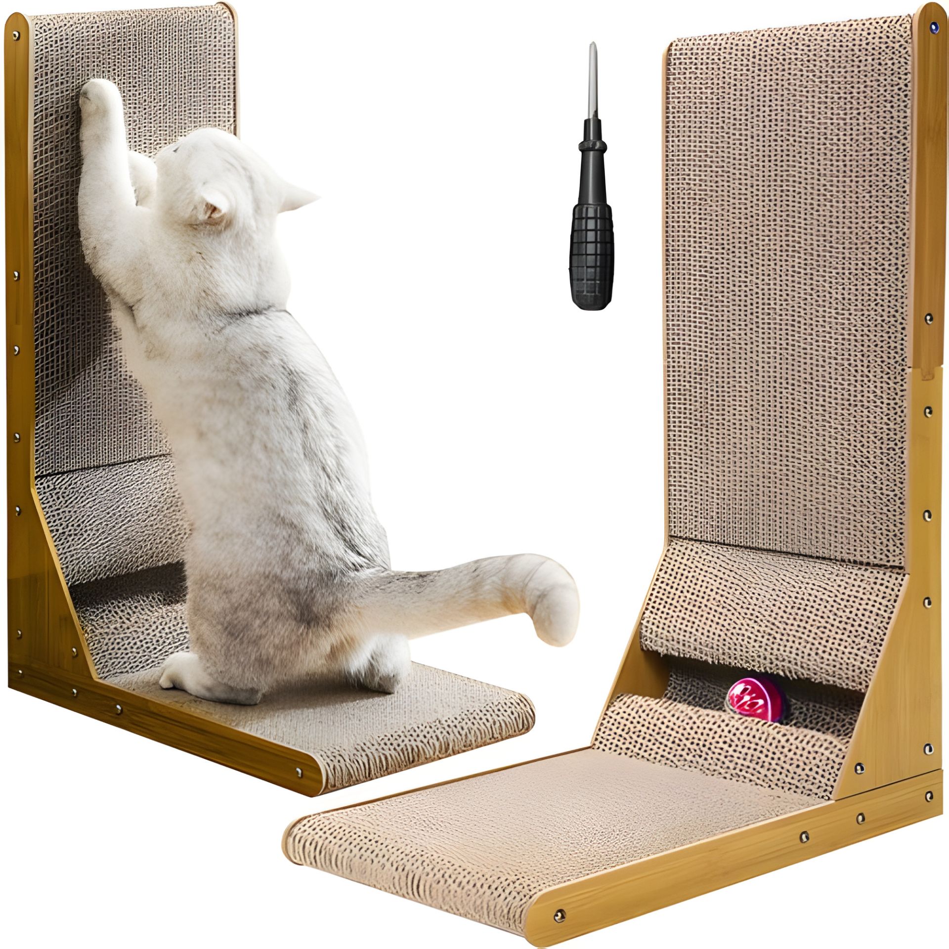 - 2 в 1 ГОРИЗОНТАЛЬНО І ВЕРТИКАЛЬНО - Килимок для кігтів складається з вертикальної та горизонтальної кігтеточки, що надає йому кутової форми. Кошеня може лежати на ньому, чесатися й грати . Кігтеточка обладнана тунелем із м'ячем для гри.