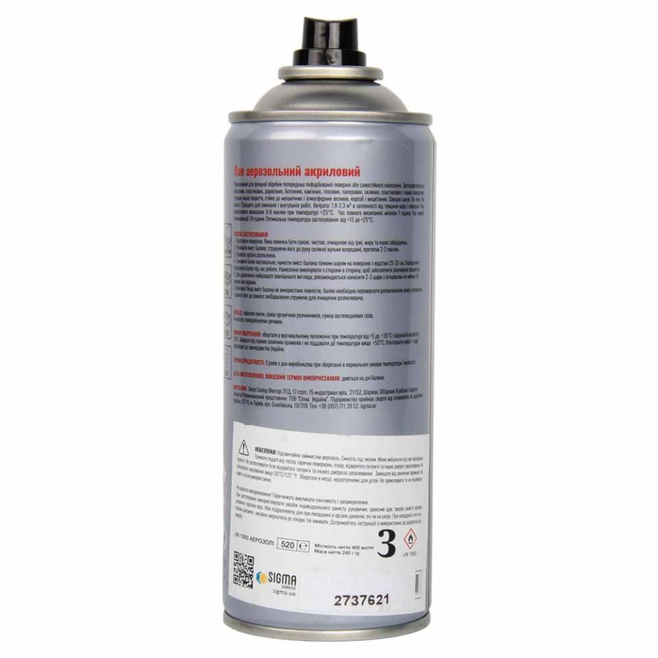 Лак аерозольний акриловий 400мл прозорий мат SIGMA (2737621)