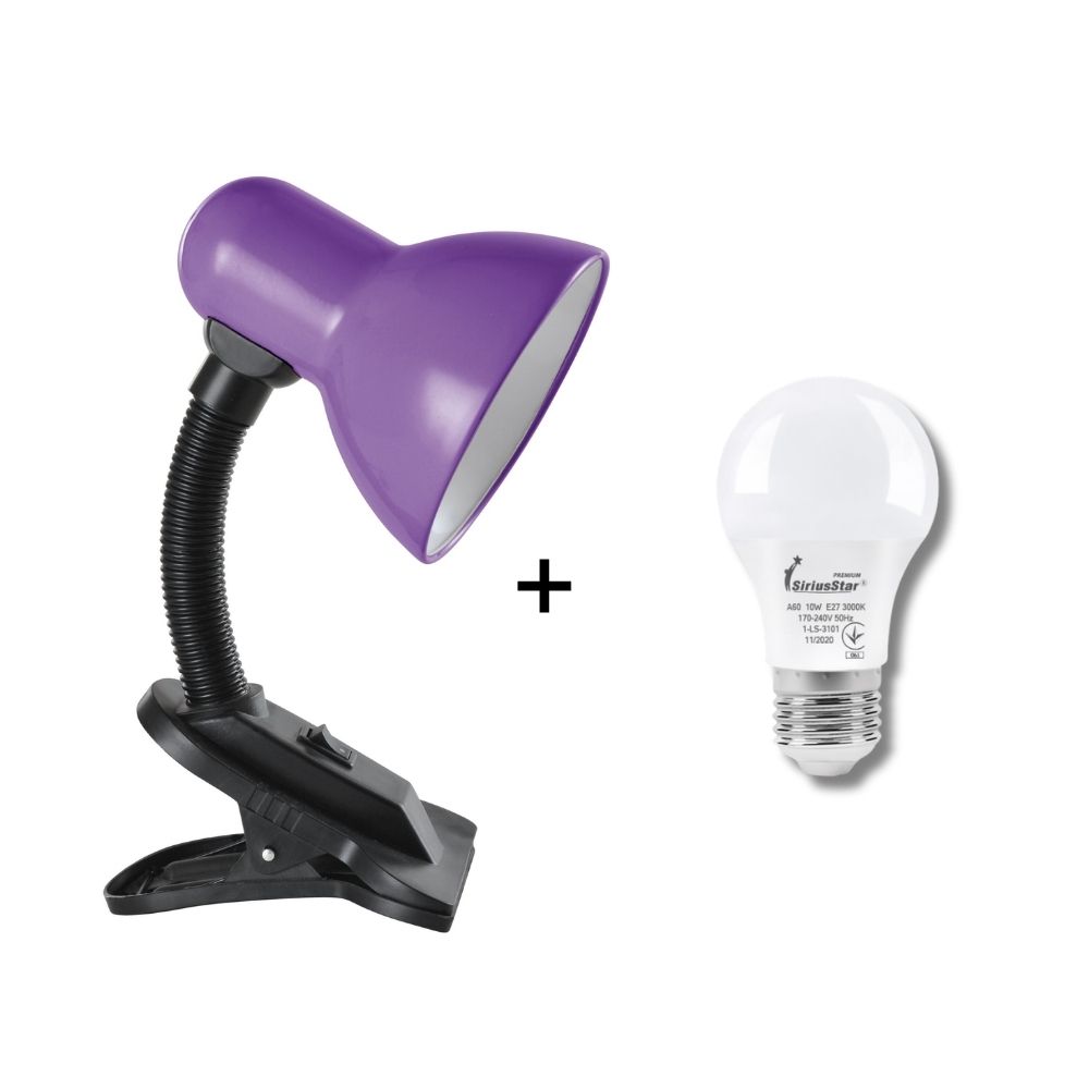 Лампа Sirius TY 1108B настільна з прищіпкою на одну лампочку (фіолетова)