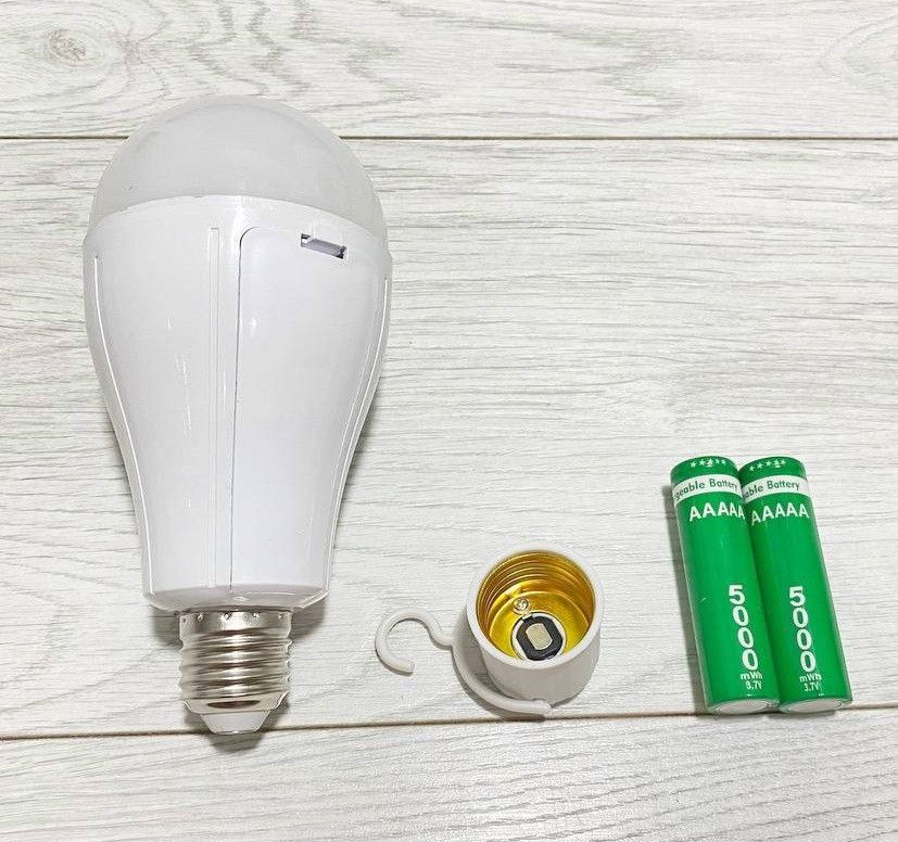 Лампочка безперебійного живлення 20W 220В цоколь Е-27 два змінні акумулятори + адаптер для кемпінгу