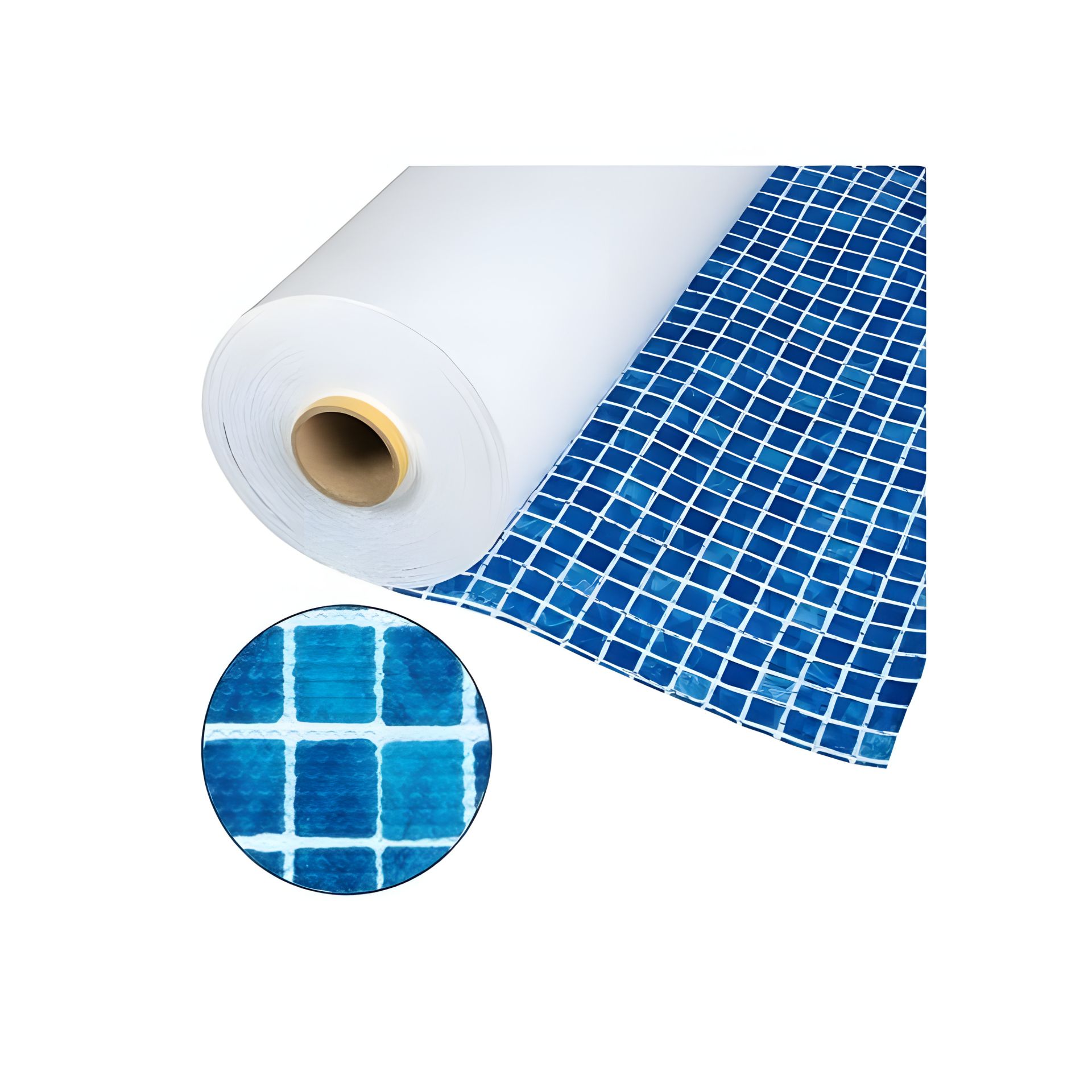 Протиковзкий лайнер Cefil Mediterraneo з малюнком синій мозаїки. Призначений для гідроізоляції та облицювання внутрішньої поверхні чаші басейну. Зовнішній шар лайнера має захисне лакове покриття, блокуючий вплив прямих сонячних променів, хімії та косметичних засобів. Антибактеріальне просочення захищає покриття від освіти цвілі і грибків. Легко і швидко монтується. Термін служби більше 10 років.