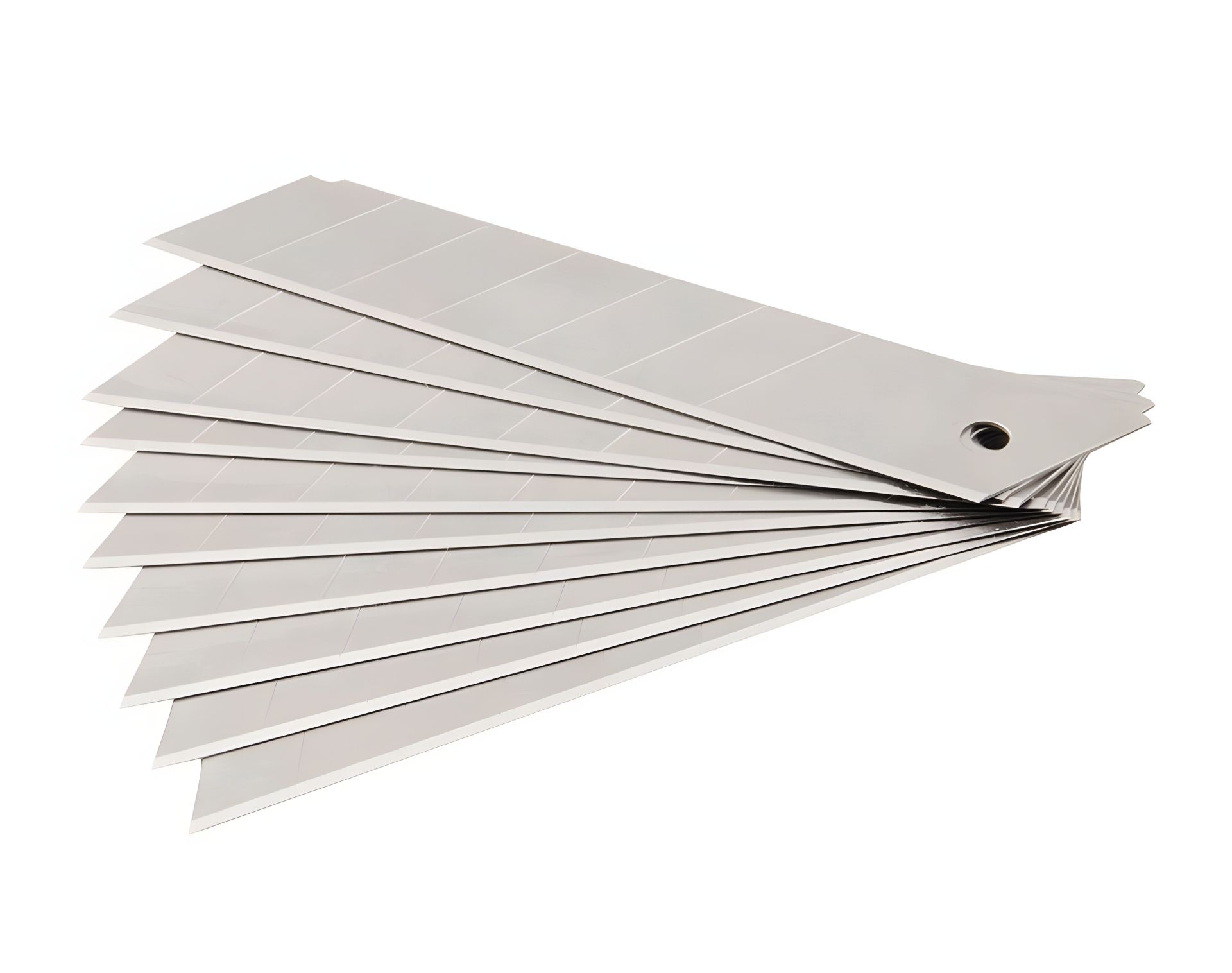 Лезо для будівельного ножа 25 мм 6 сегментів, набір 10 шт. – міцні змінні леза для важких будівельних та ремонтних робіт. Завдяки ширині 25 мм та товстій сталі, вони забезпечують високу стійкість до навантажень та довговічність.