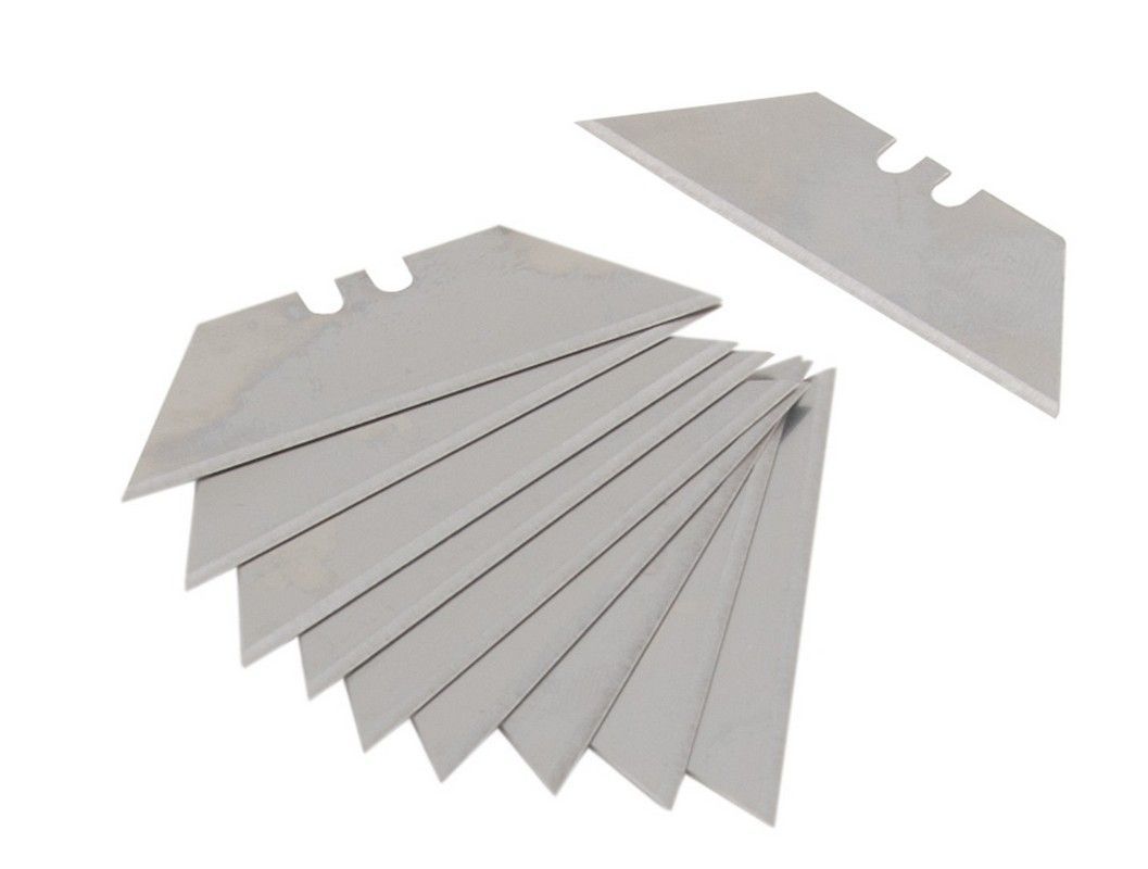 Леза виготовлені із сталі підвищеної міцності, що забезпечує тривалий термін служби та гостроту ріжучої кромки. Трапецієподібна форма підходить для більшості стандартних будівельних ножів. Набір із 10 штук гарантує, що запас завжди під рукою для тривалої та безперебійної роботи.