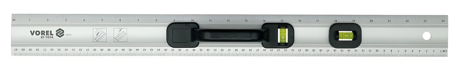 Столярна лінійка алюмінієва, 2 вічка, довжина 600 мм, бренд Vorel, артикул 19770