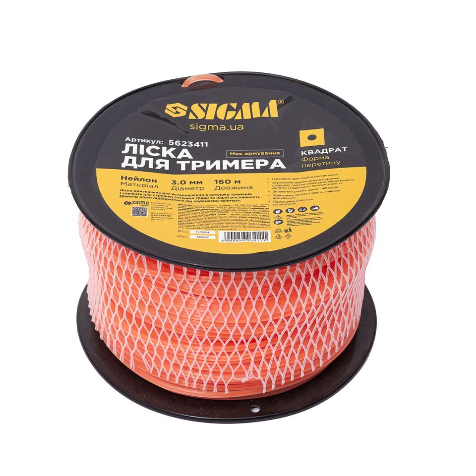 Лісочка для тримера армований квадрат Ø3.0мм 160м котушка SIGMA 5623411
