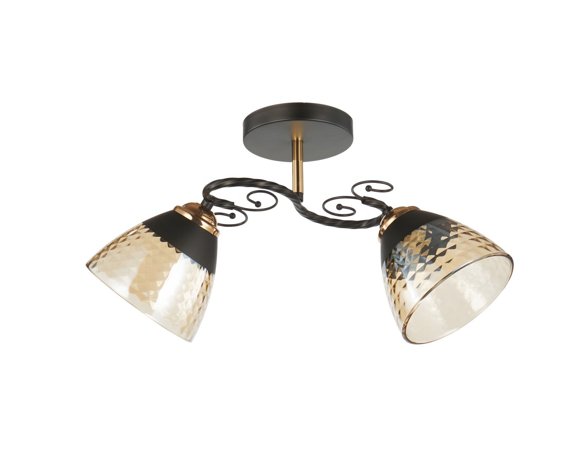 Модель оснащена двома джерелами світла. Плафони мають м’яку форму та чудово поєднуються з загальною геометрією люстри, забезпечуючи приємне, рівномірне освітлення. Завдяки класичному розміщенню ламп та відкритій формі, люстра створює м’яке розсіяне світло, яке ідеально підходить для зонального або основного освітлення в невеликих приміщеннях.
