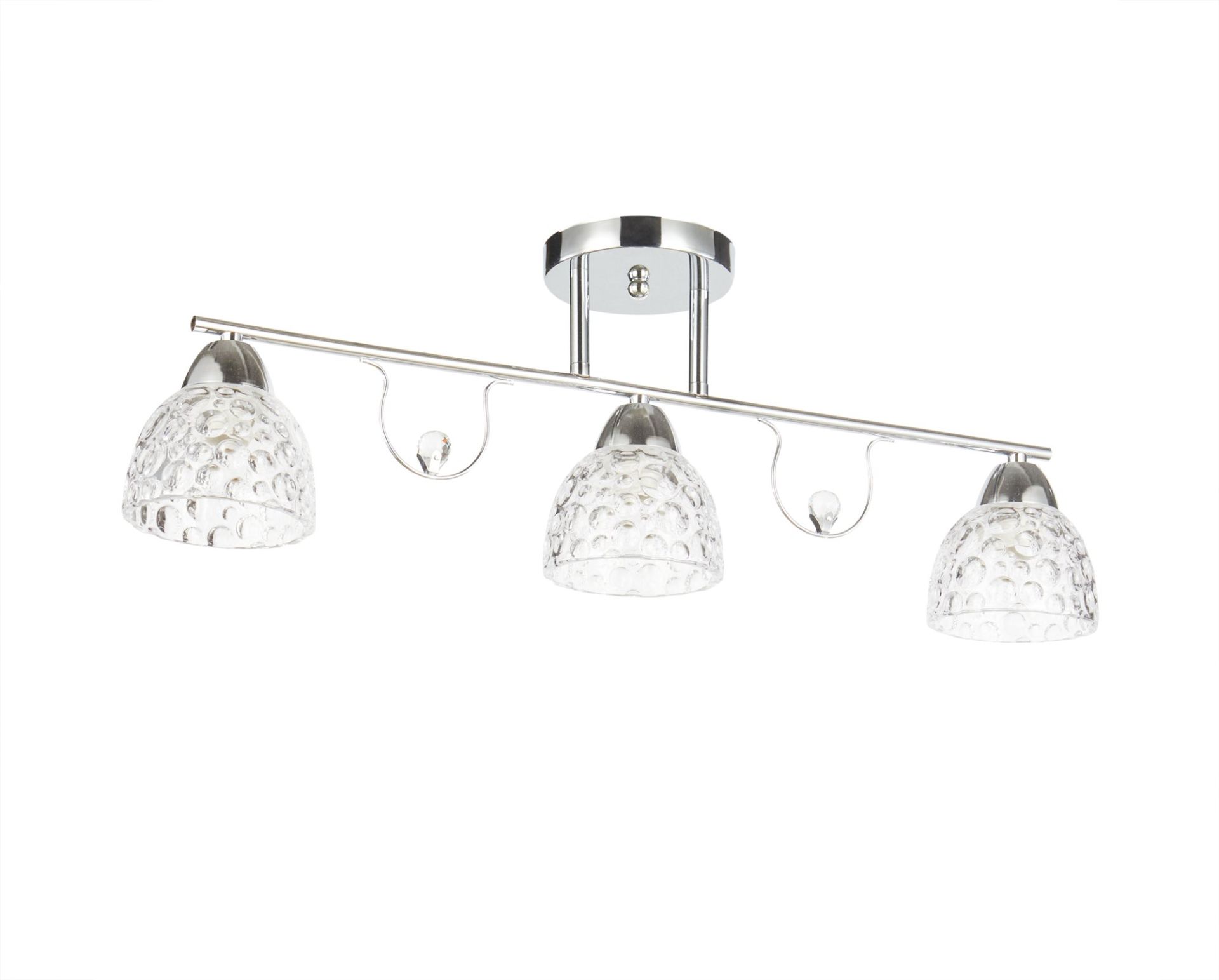 Модель оснащена трьома прозорими плафонами, які дозволяють світлу рівномірно розподілятися в просторі, забезпечуючи яскраве та комфортне освітлення. Завдяки прозорості плафонів люстра виглядає легкою та повітряною, а відкритий дизайн підкреслює лампи й додає інтер’єру декоративного шарму.