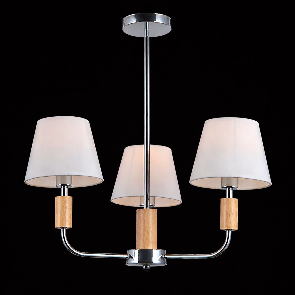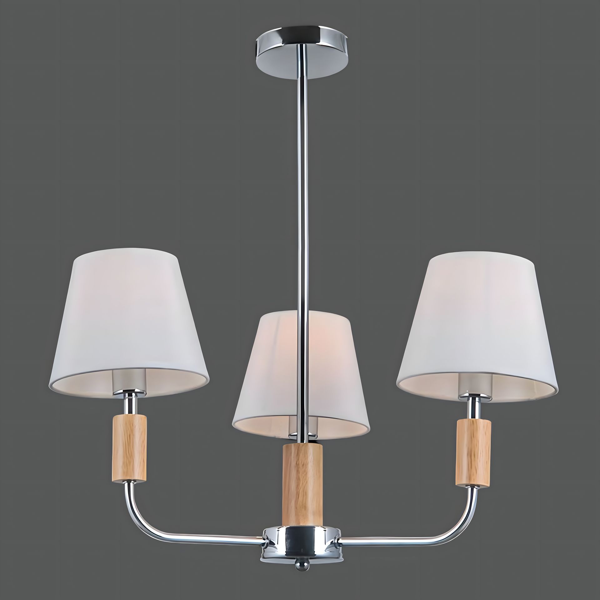 Люстра класична для вітальні VALESO V16-3 CH — стильний акцент у вашій вітальні, який гармонійно поєднує класику з сучасними елементами дизайну. Завдяки витонченій комбінації хромового металу, дерев'яних деталей і білих текстильних плафонів, ця модель додає тепла, затишку і неперевершеної елегантності вашому інтер’єру.