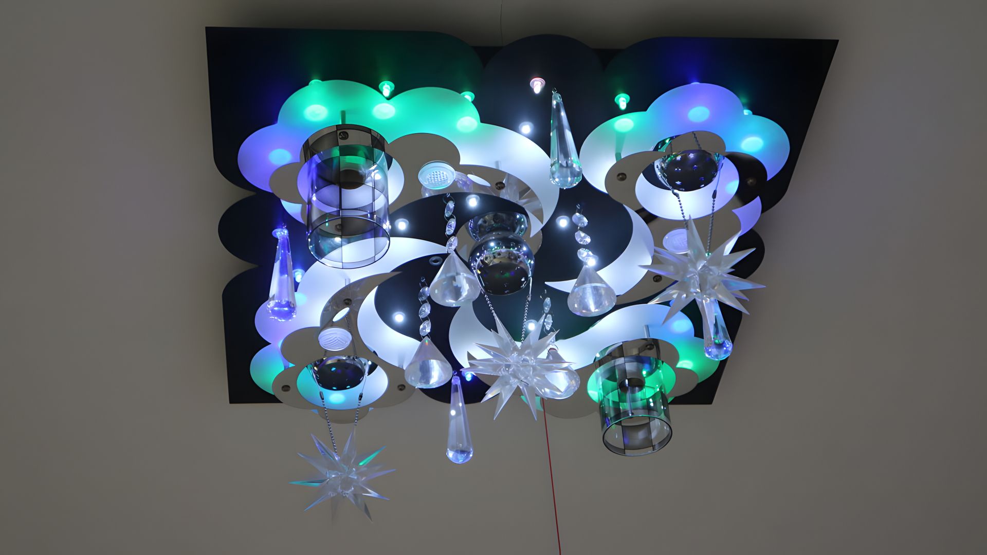 Люстра виготовлена з акрилу, що надає їй особливий блиск та сучасний вигляд.