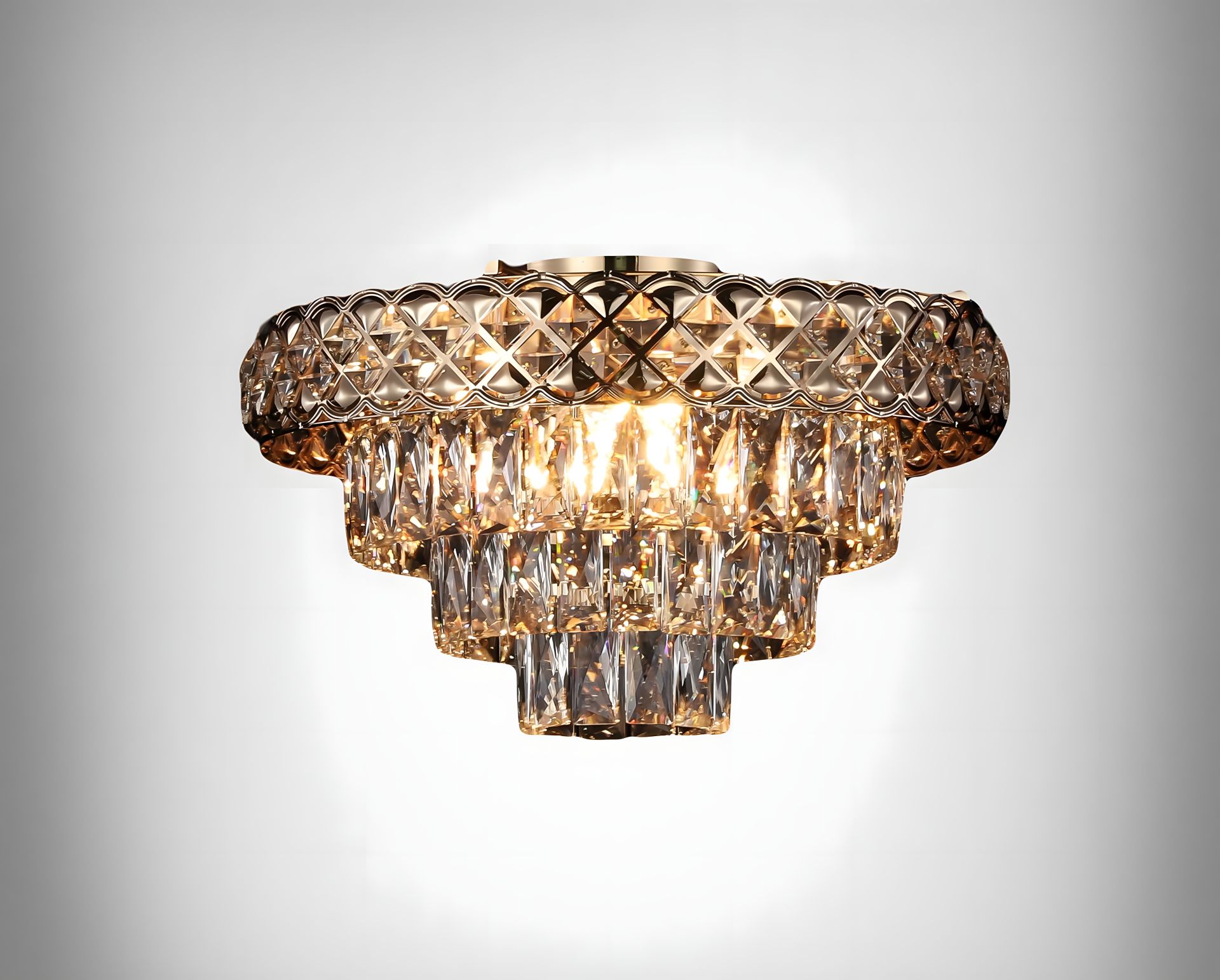 Матеріал виробу - метал, що надає люстрі міцності і тривалості. Комбінація металевих елементів з кришталевими прикрасами створює чудовий контраст і додає люстрі витонченості. Кришталеві акценти мерехтять і розсіюють світло, створюючи грайливі відблиски і тіні, що додають блиск і розкіш до приміщення.