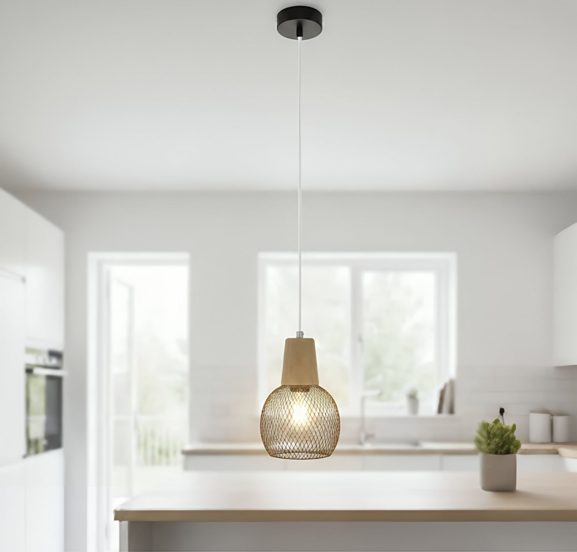 Підвісна люстра VALESO LP9600 BK створена для тих, хто цінує мінімалізм, лофт і промисловий стиль. Її металевий плафон у вигляді сіточки чорного кольору та елементами дерева надає особливого шарму та гармонійно доповнює будь-який сучасний інтер’єр.